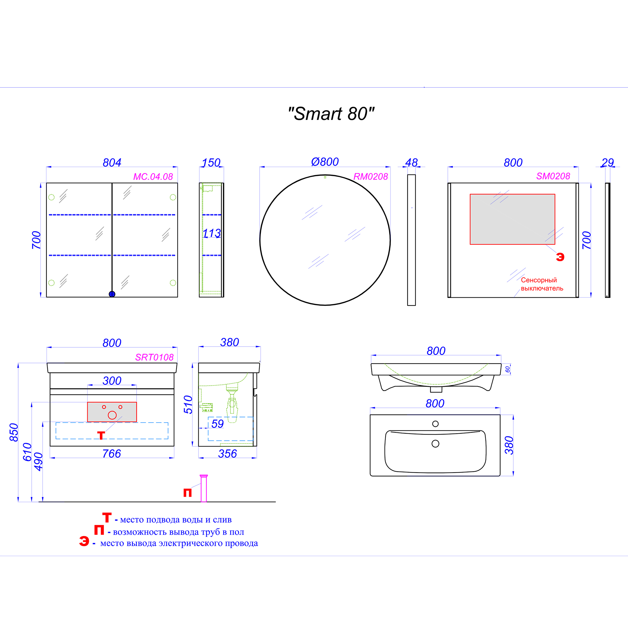 Тумба под раковину Aqwella Smart 80 см бетон светлый SRT0108BS