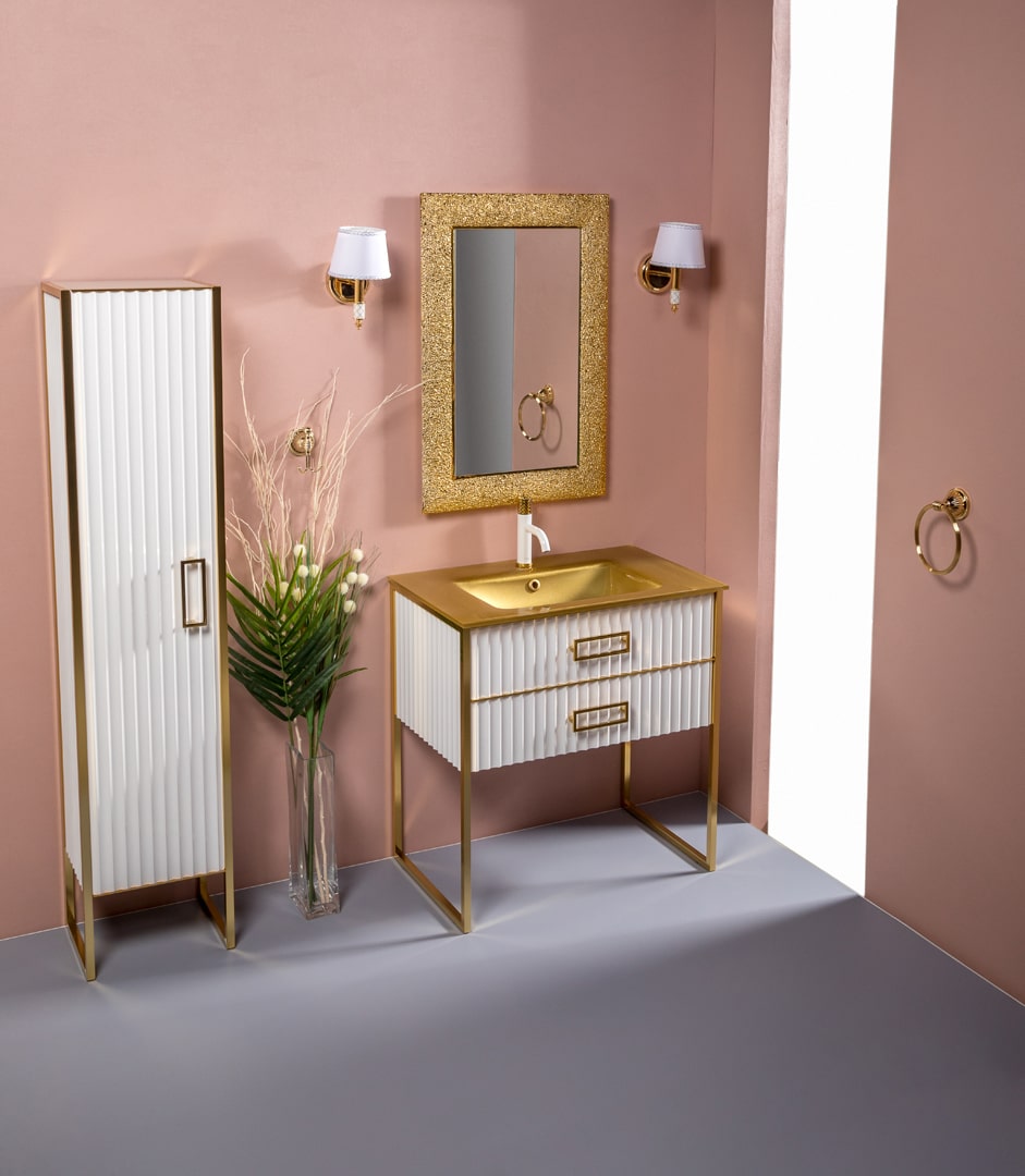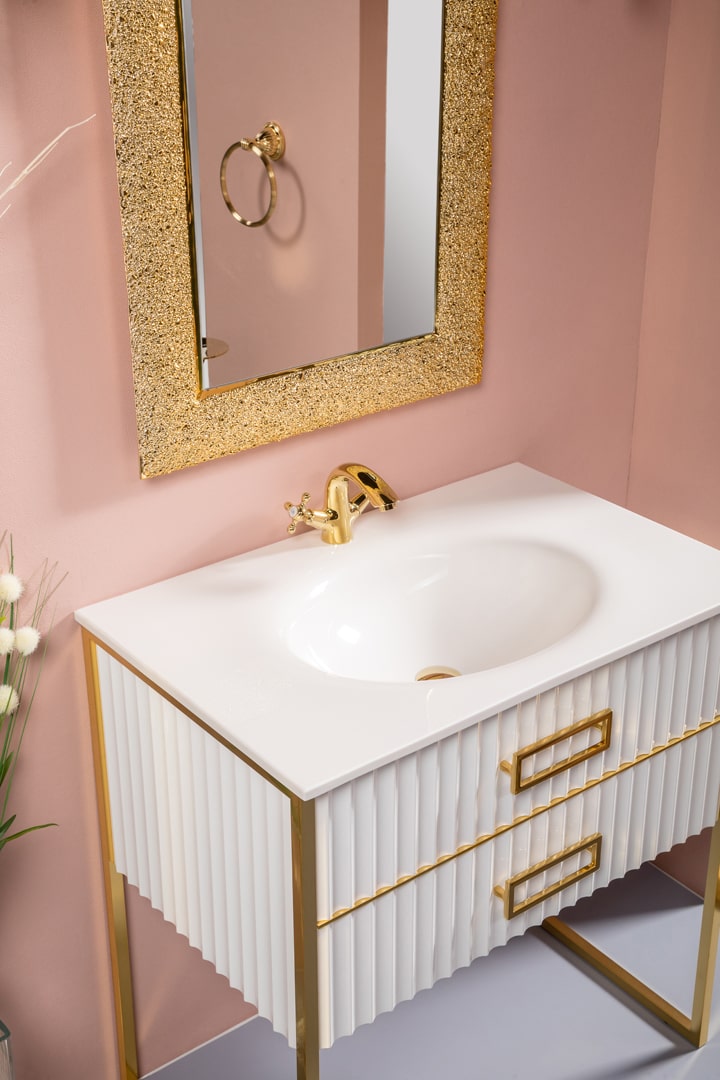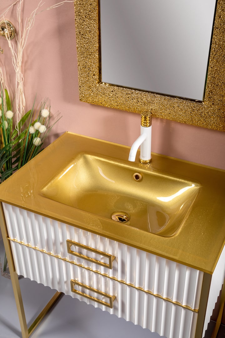 Тумба под раковину Armadi Art Mónaco 80 см белый глянец/золото 866-080-WG