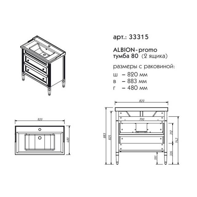 Тумба под раковину Caprigo Albion Promo 80 см 33315 ящики цвета разные