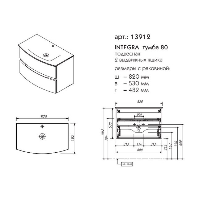 Тумба под раковину Caprigo Integra 80 см 13912 цвета разные
