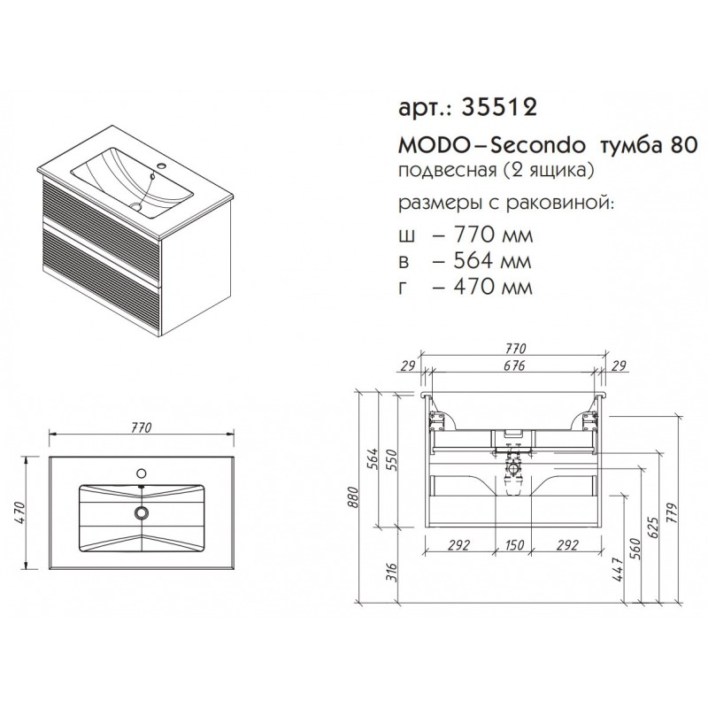 Тумба под раковину Caprigo MODO–Secondo 80 см 35512 цвета разные