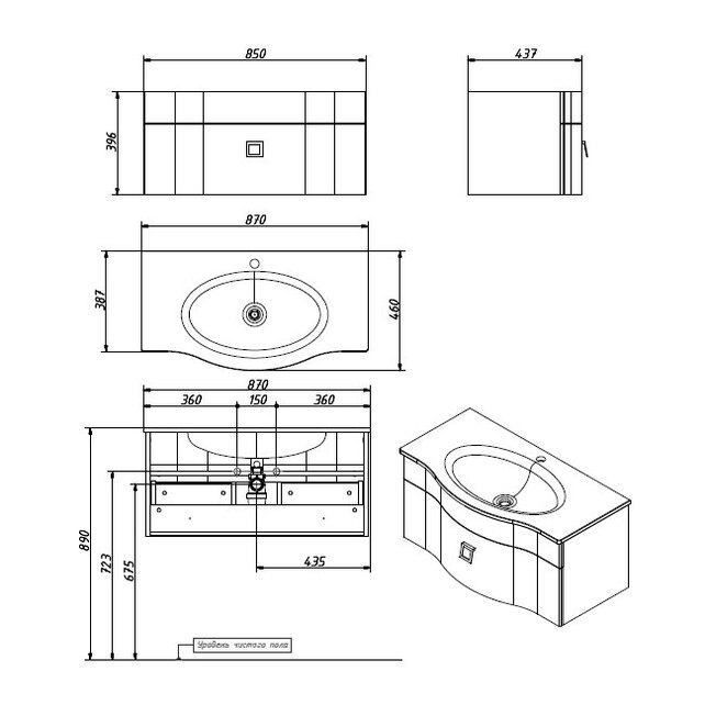 | Раковина | OW15-1313 стекло без бортика/ приобретается отдельно |