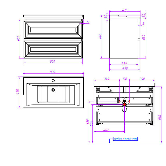 | Раковина | Y-090B керамика/ приобретается отдельно |
