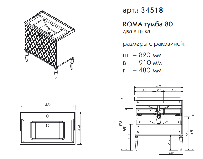 Тумба под раковину Caprigo Roma 80 см ящики 34518 цвета разные