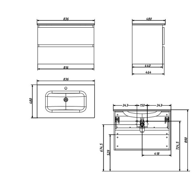 Тумба под раковину Caprigo Sydney 85 см эмаль 34812 цвета разные