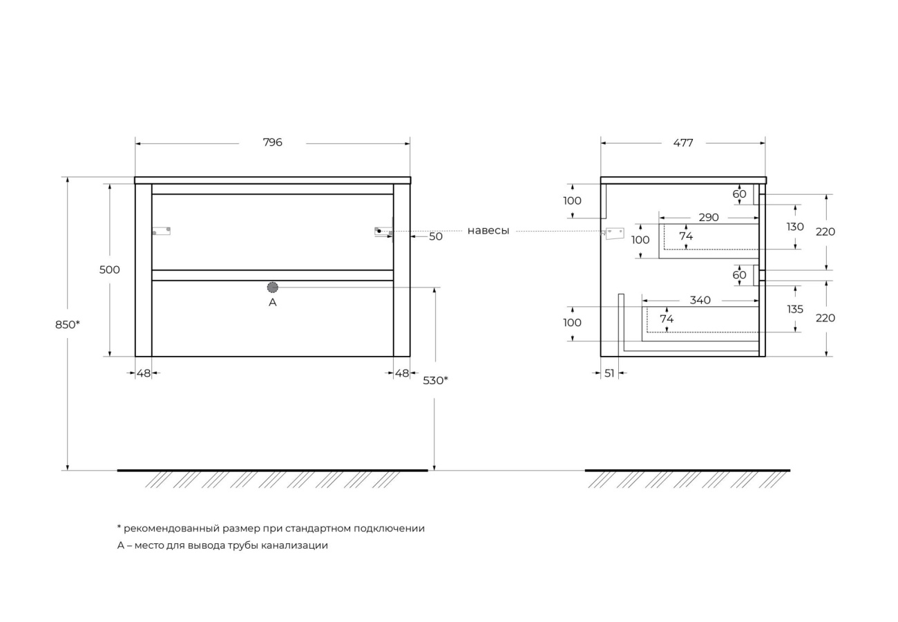 | Раковина | Искусственный мрамор/ приобретается отдельно |