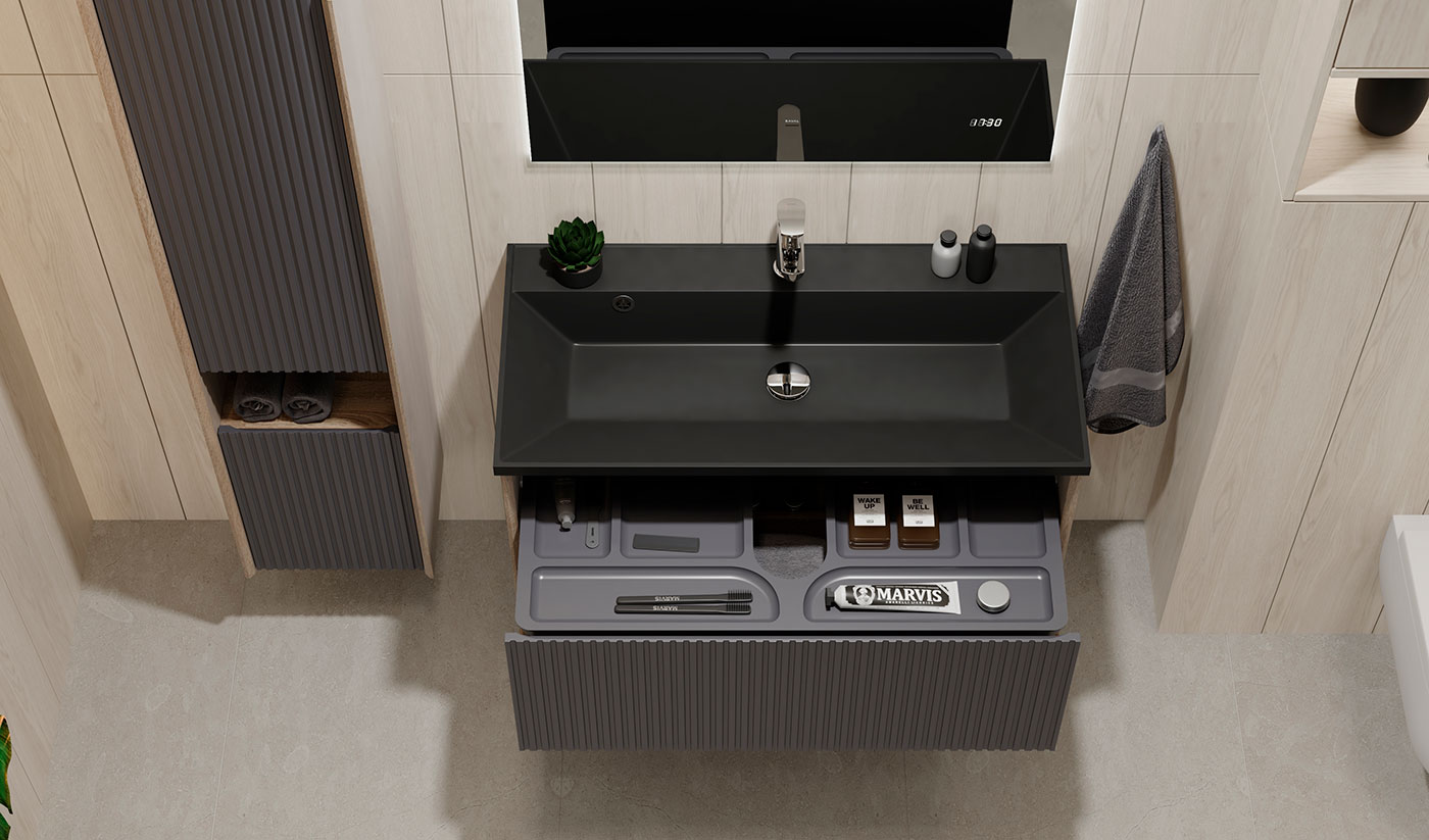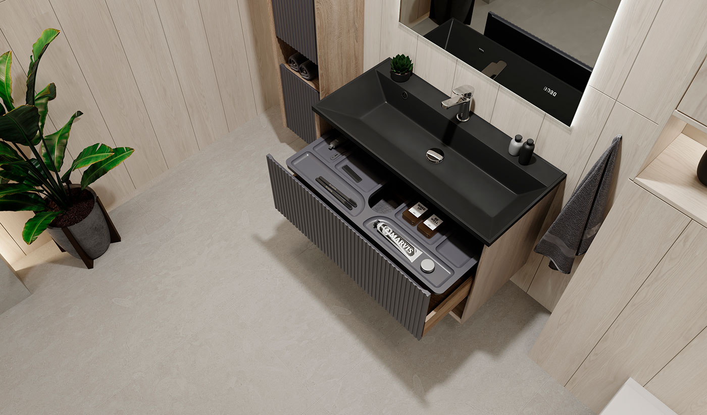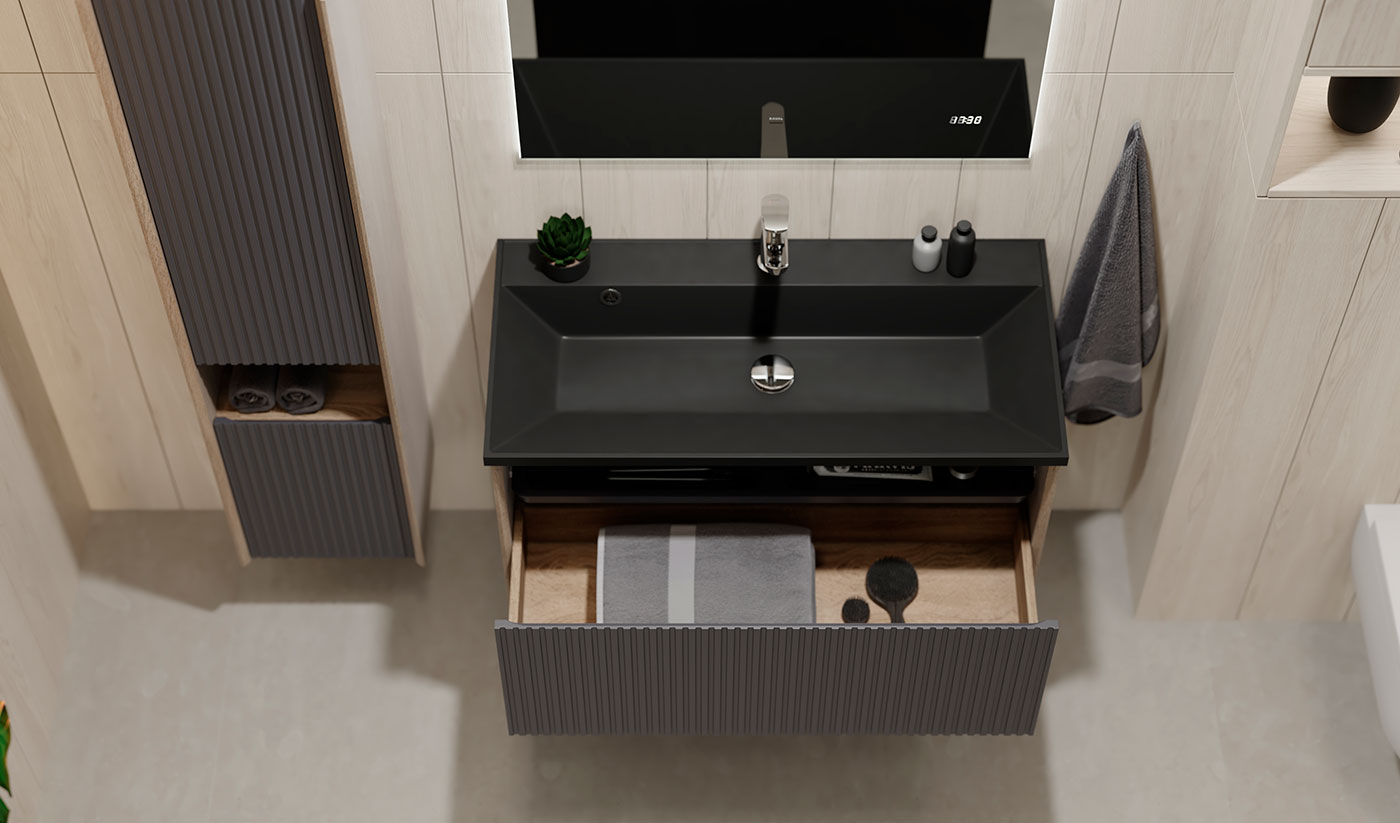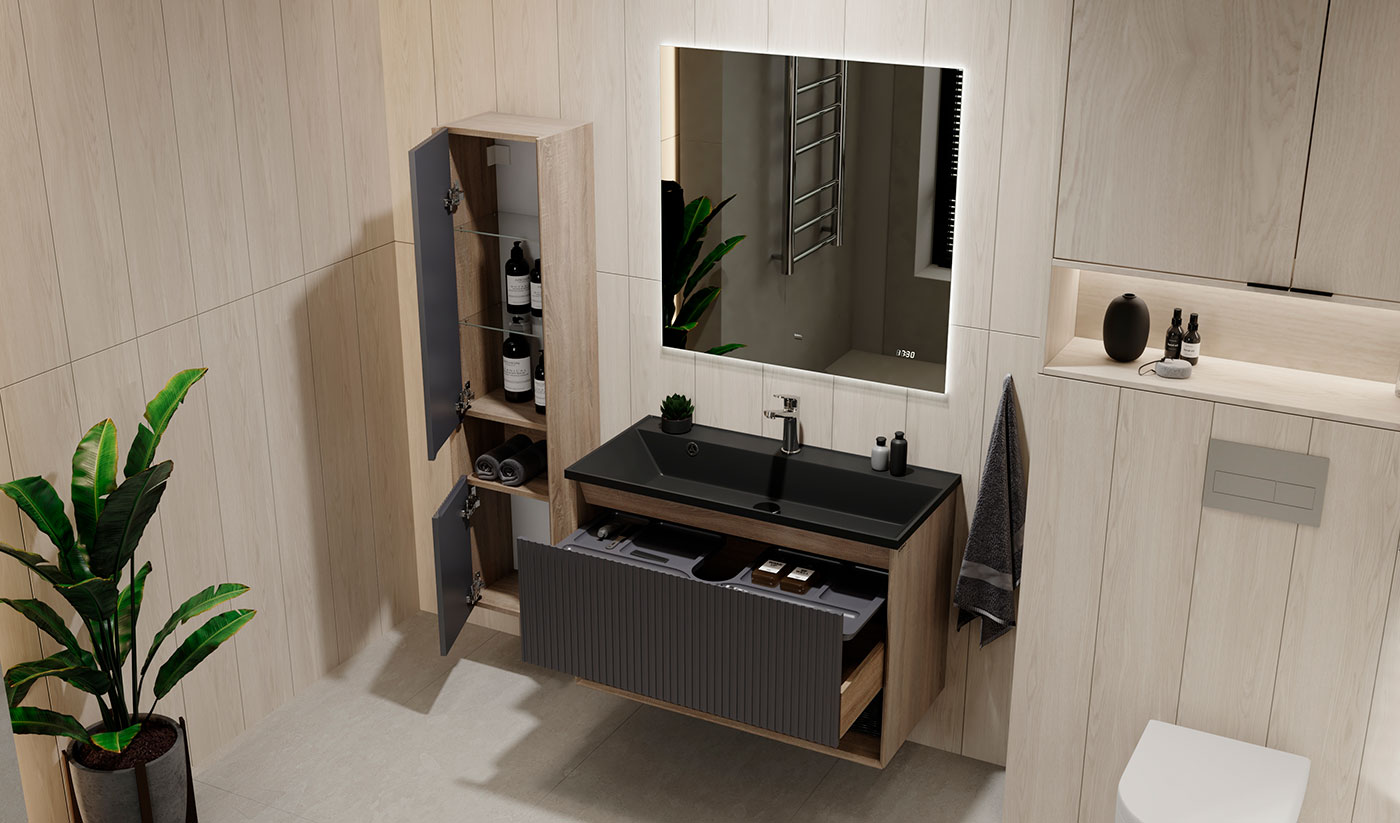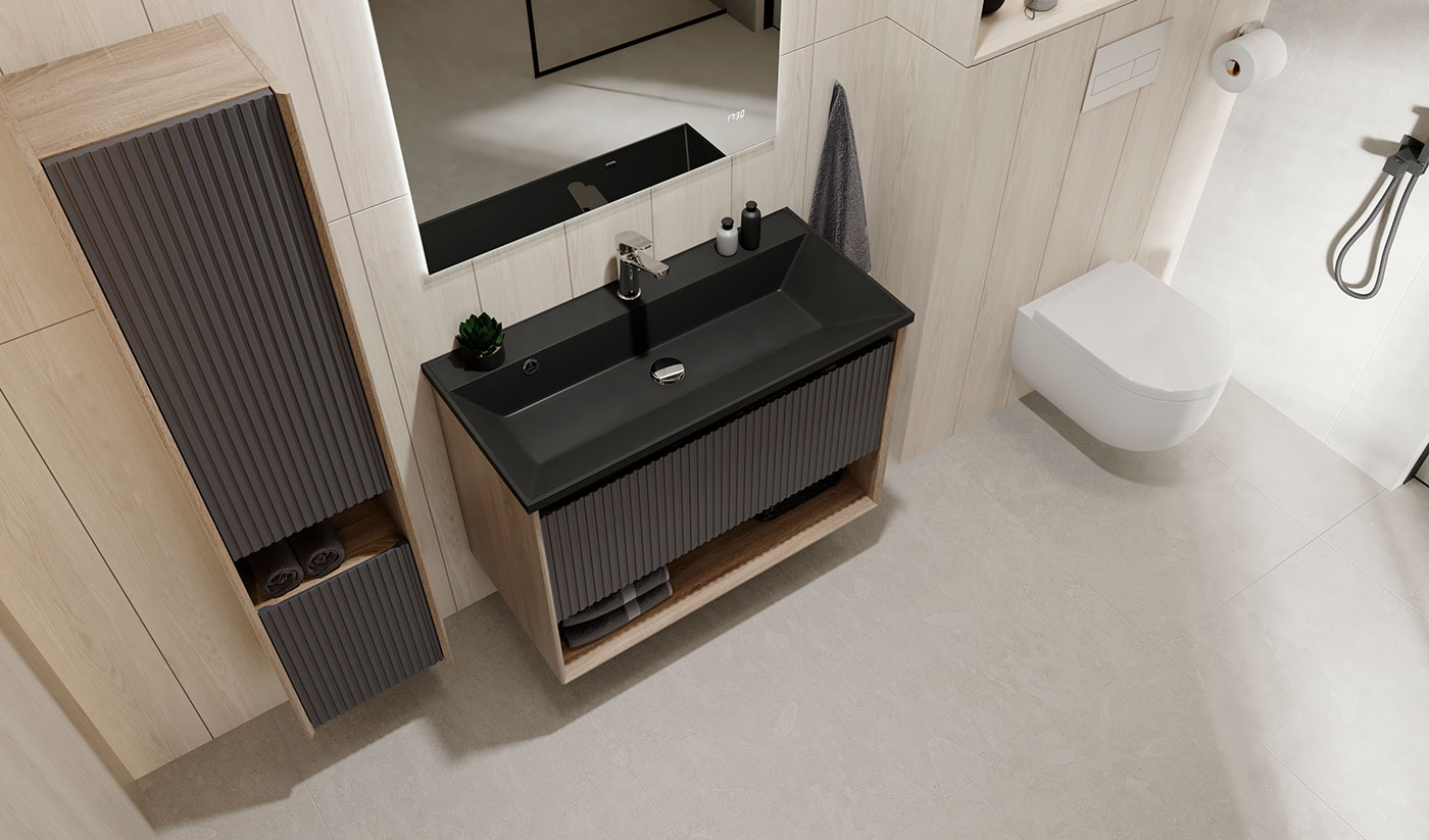 Тумба под раковину Jorno Tossony 90 см дуб самдал/ антрацит Toss.01.90/P/DS-A/JR