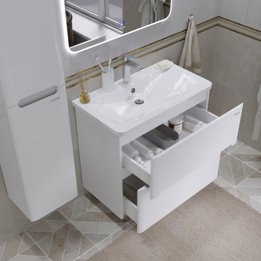 Тумба под раковину напольная Grossman Адель-Норма 80 см белый глянцевый 108023