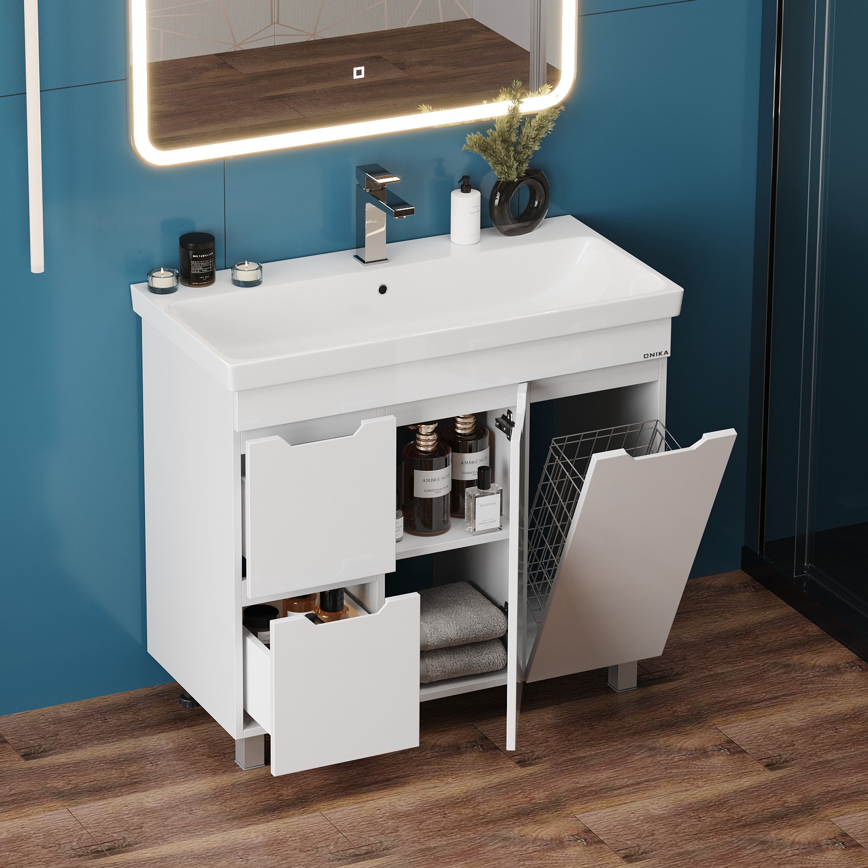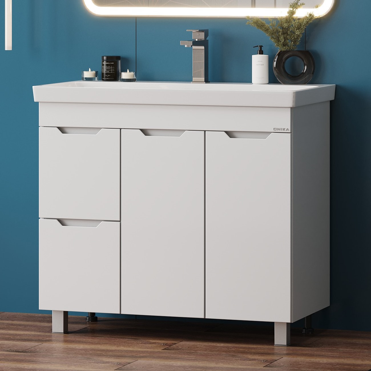 Тумба под раковину напольная Onika Айленд 90 см (Santek Адриана) белый 109030