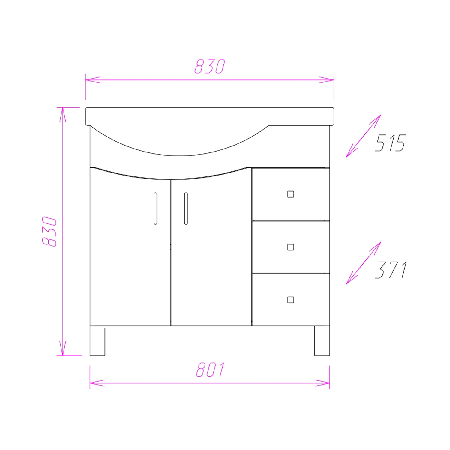 Тумба под раковину напольная Onika Эльбрус 82 см (Santek Коралл) белый 108202