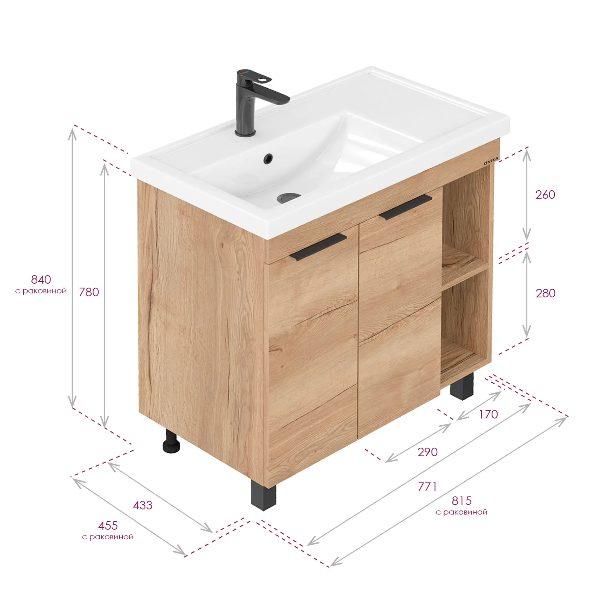 Тумба под раковину напольная Onika Легран 80 см (Кirovit Фостер) дуб галифакс 108063
