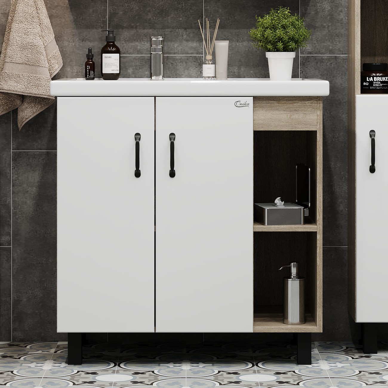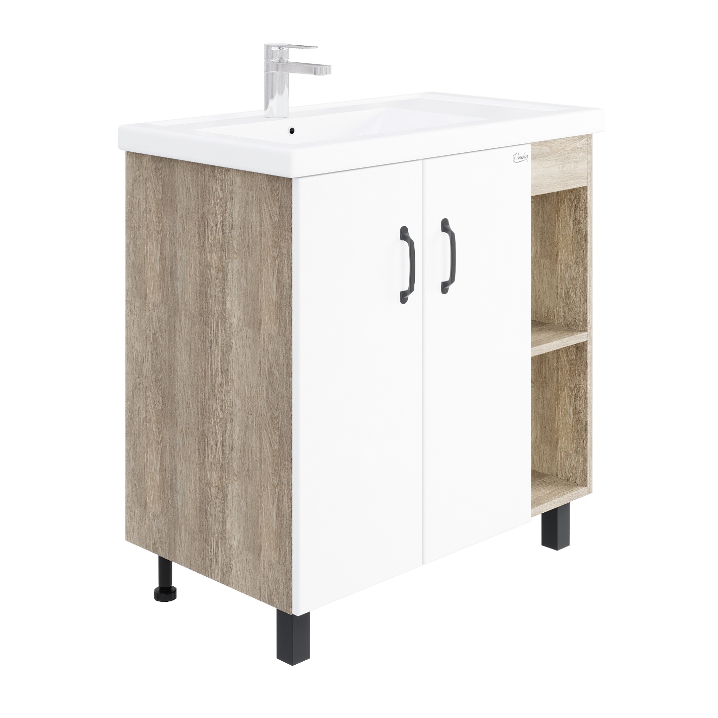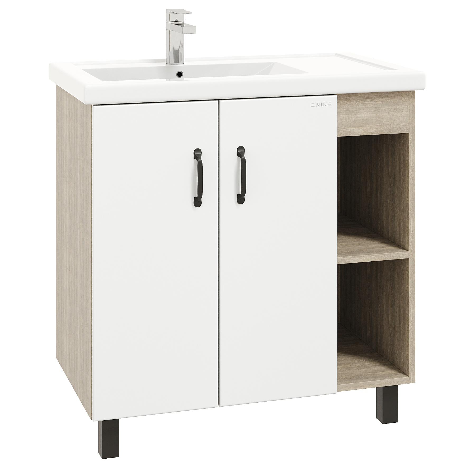 Тумба под раковину напольная Onika Тимбер 80 см (Кirovit Фостер правая) белый матовый/дуб сонома 108045