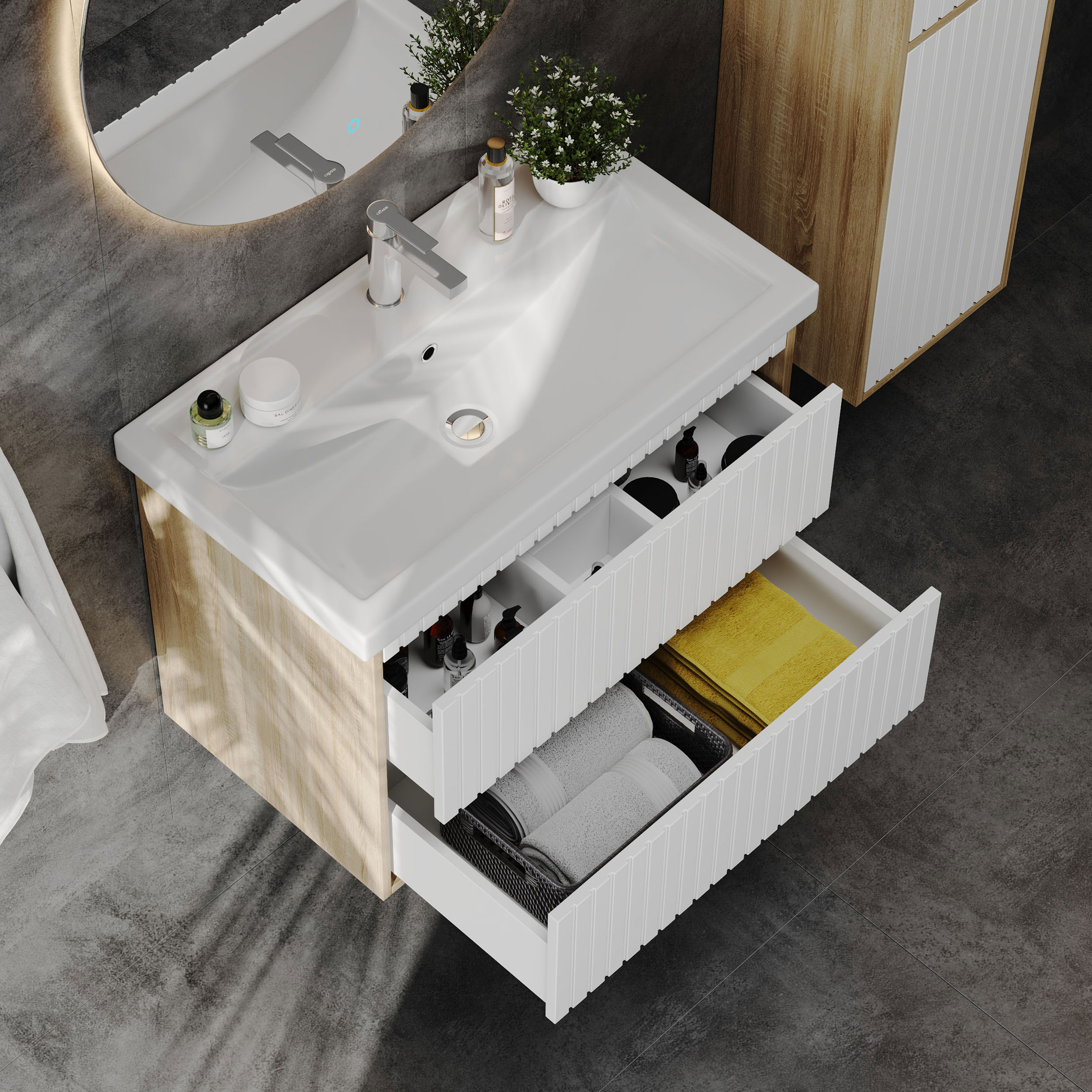 Тумба под раковину Onika Дайлер 80 см (Кировит Фостер) белый/дуб сонома 108061