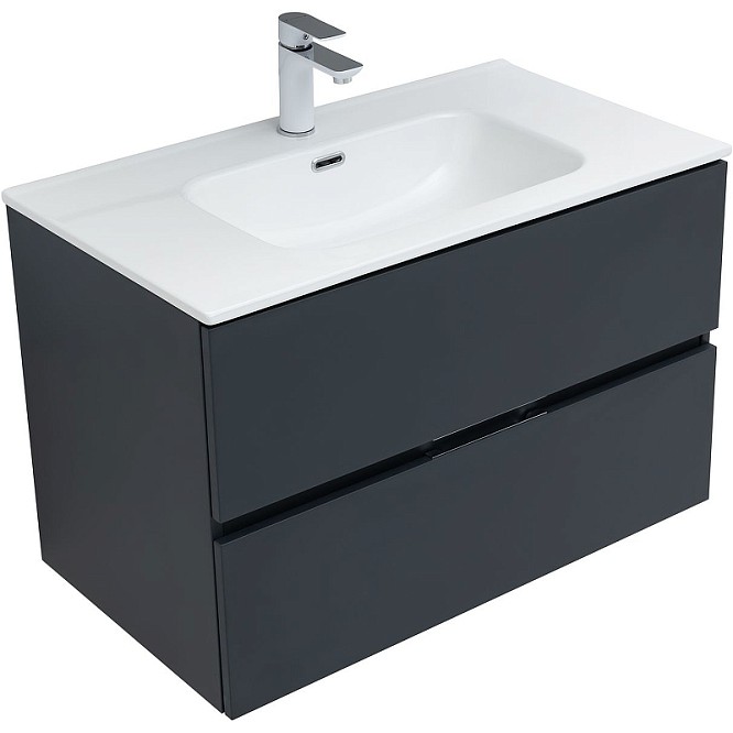 Тумба под раковину подвесная Aquanet Алвита NEW 80 см 2 ящ антрацит матовый 277515