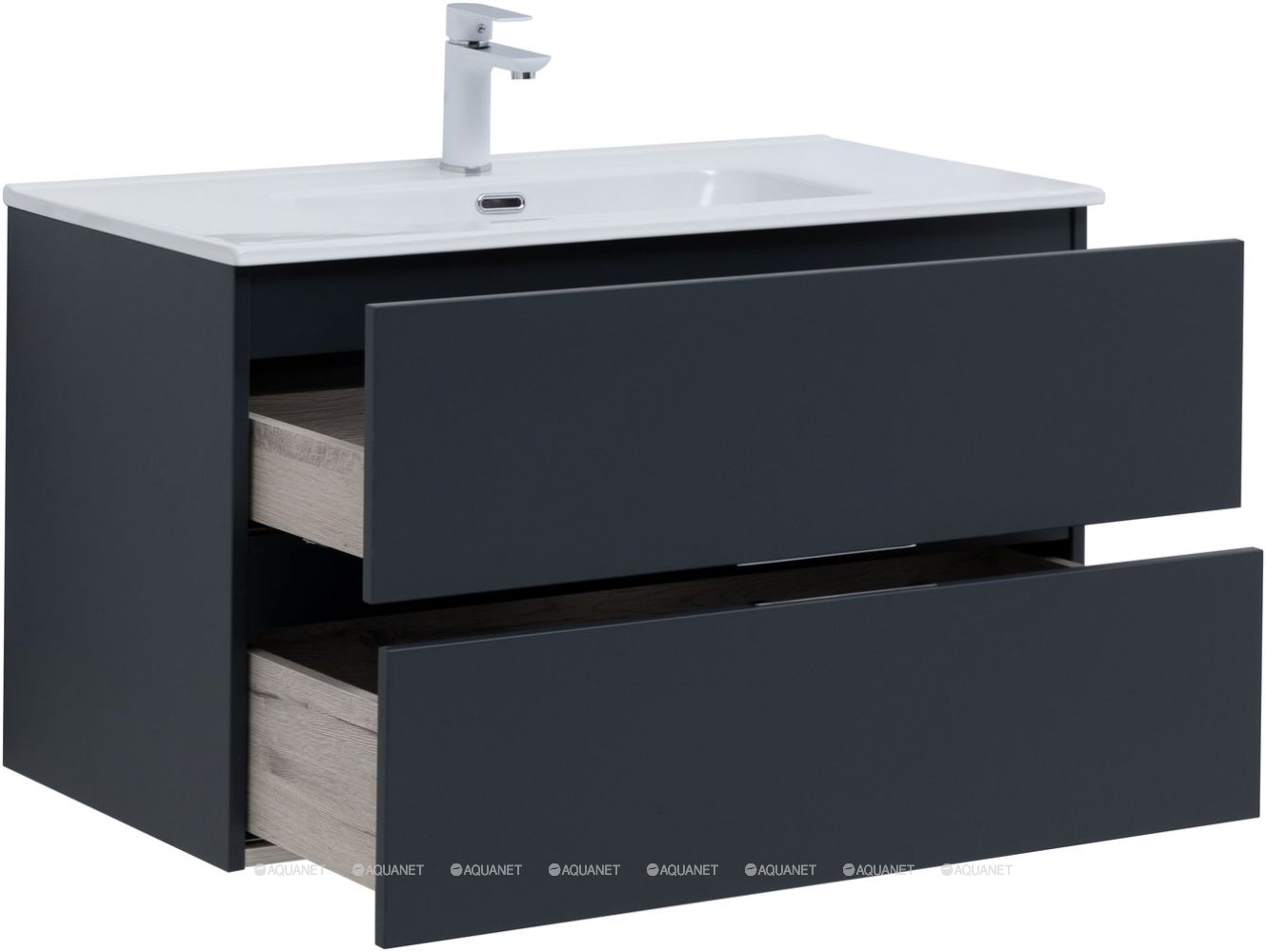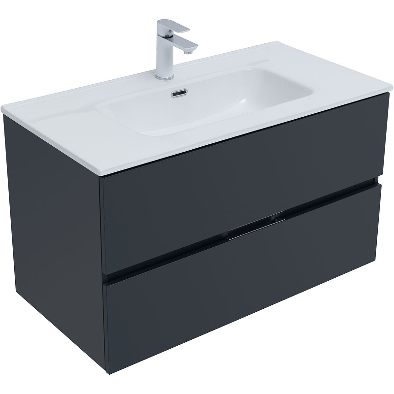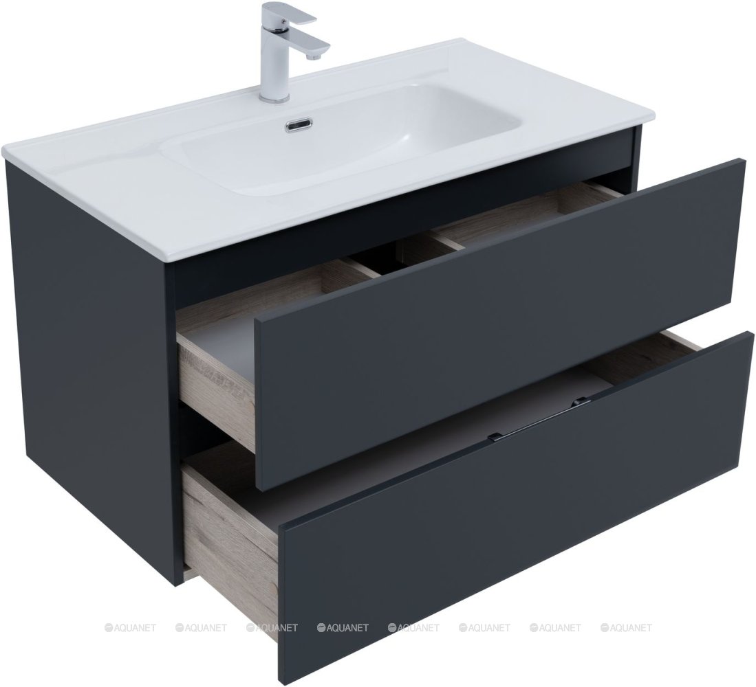 Тумба под раковину подвесная Aquanet Алвита NEW 90 см 2 ящ антрацит матовый 303919