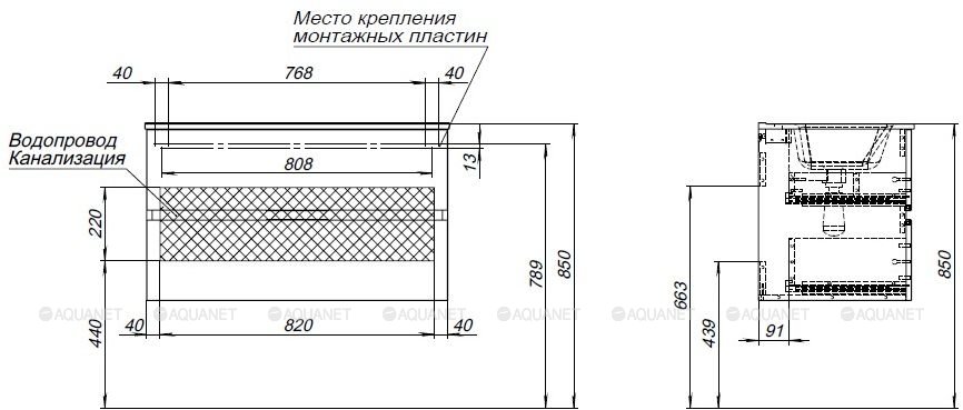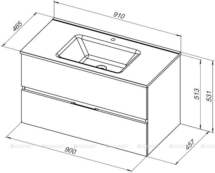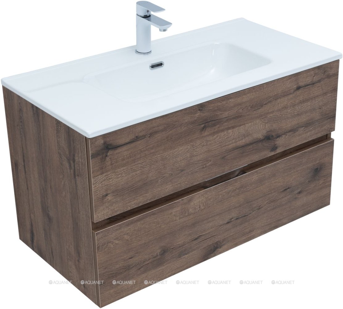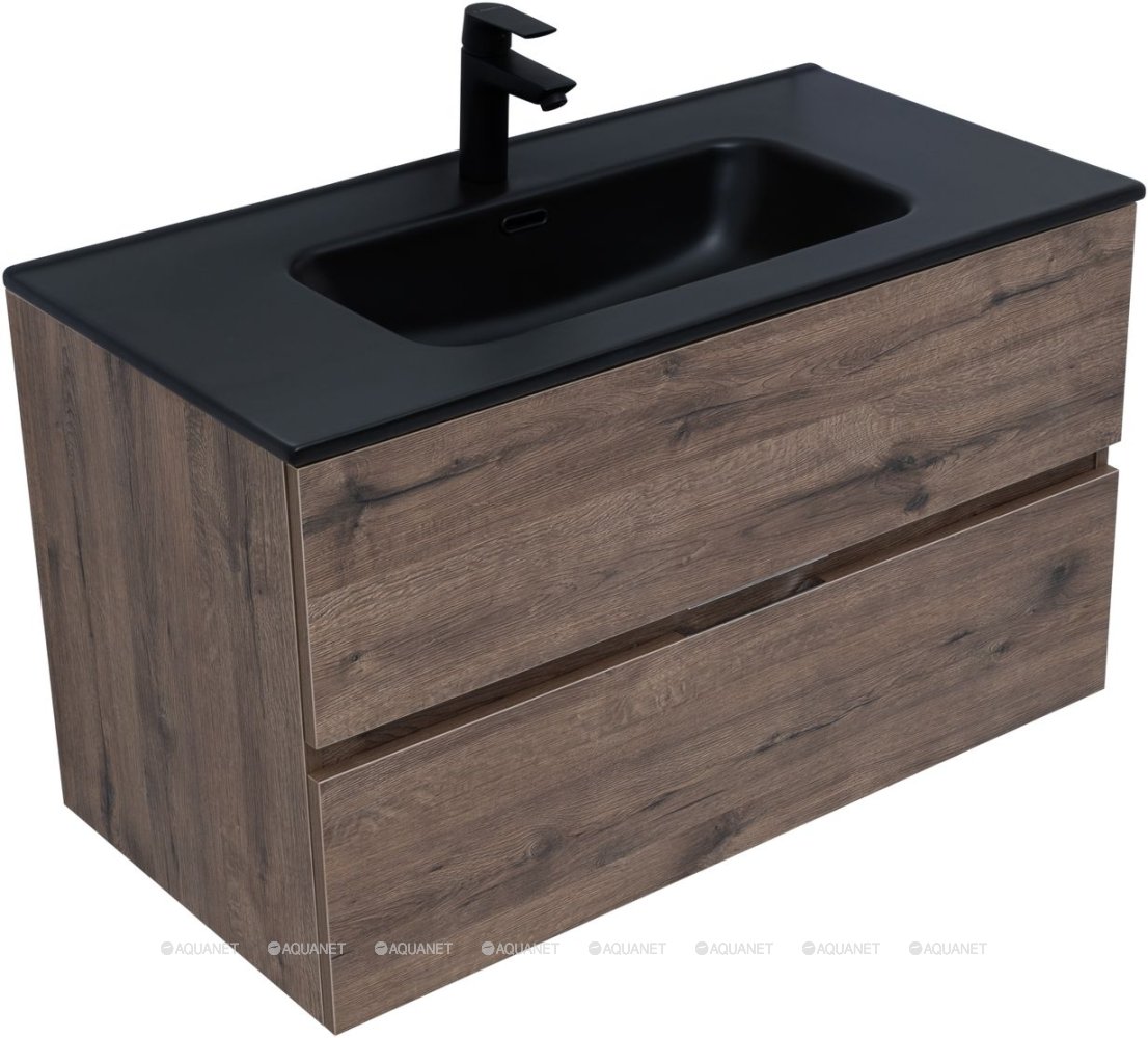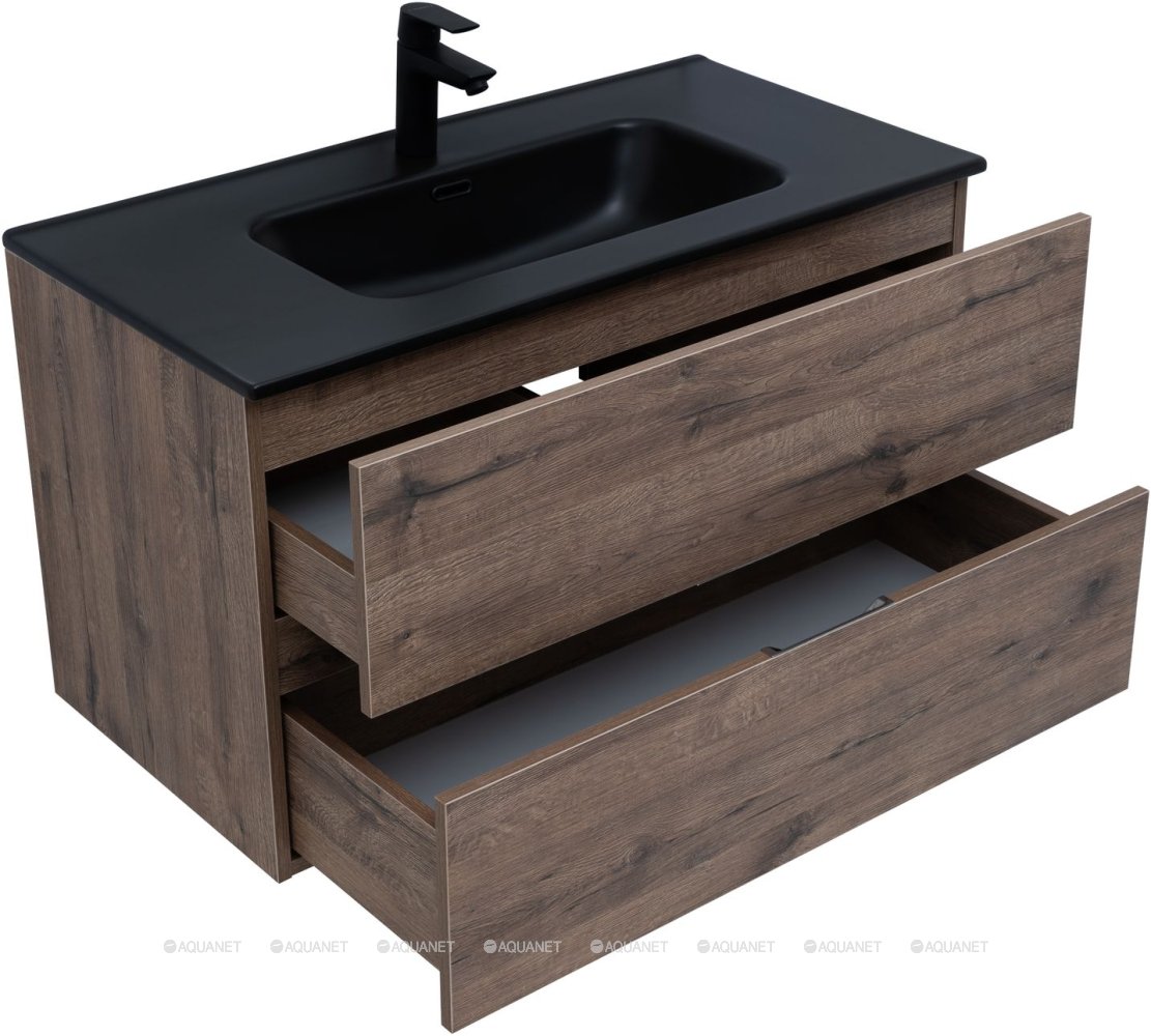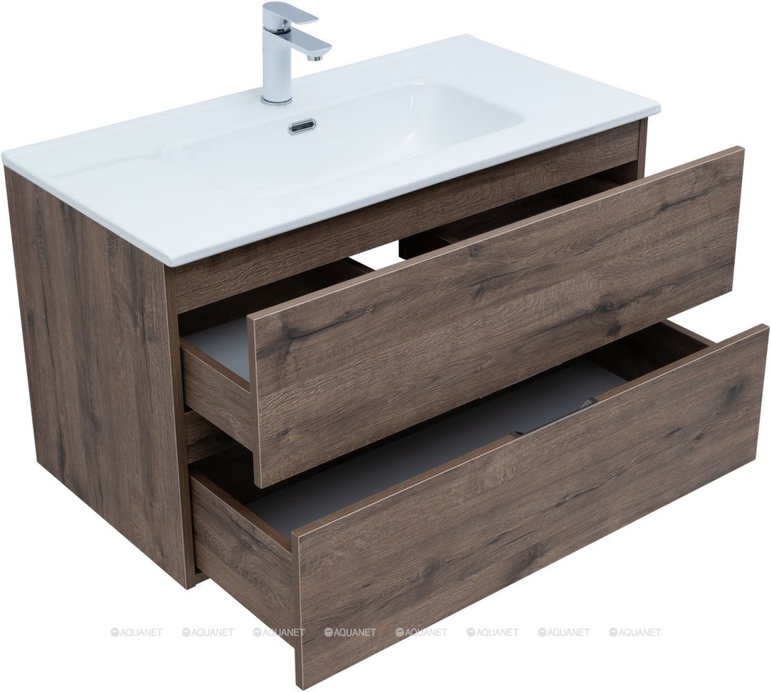 Тумба под раковину подвесная Aquanet Алвита NEW 90 см 2 ящ дуб веллингтон табак 334187