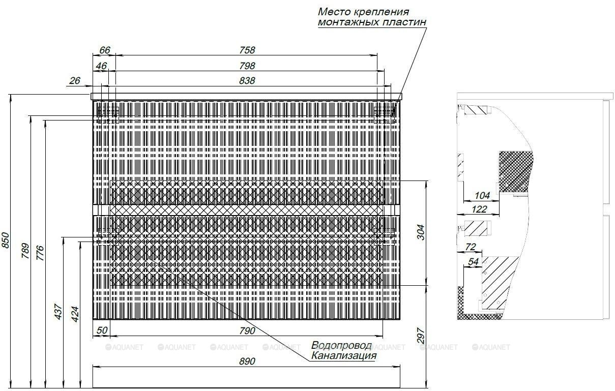 Тумба под раковину подвесная Aquanet Джейн (Flat) 90 см маренго 335430