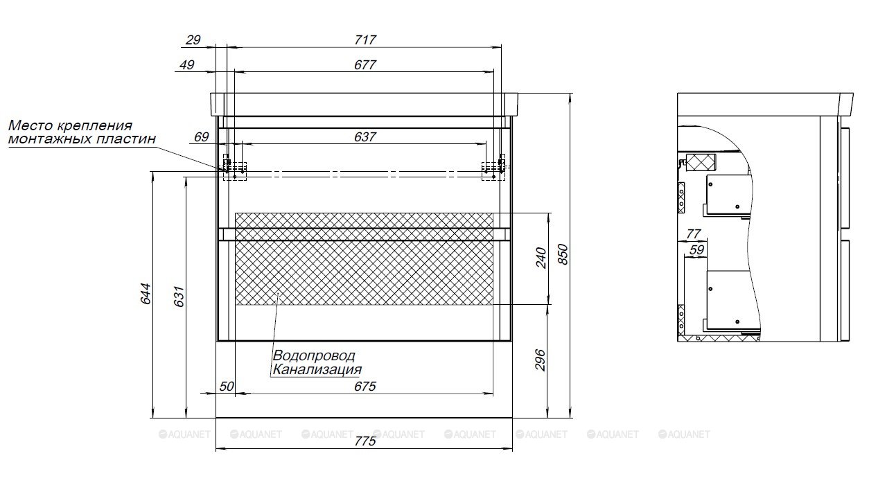 - Внутренние детали - влагостойкая ЛДСП, цвет белый.
