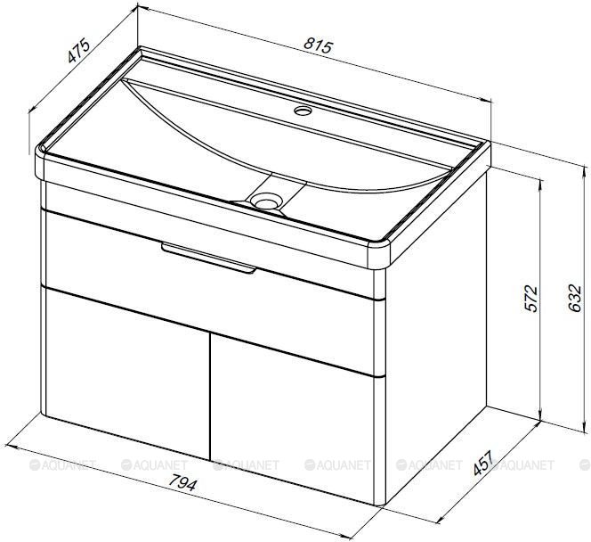Тумба под раковину подвесная Aquanet Ирис NEW 80 см (1ящ+2дв) белый глянец 310150