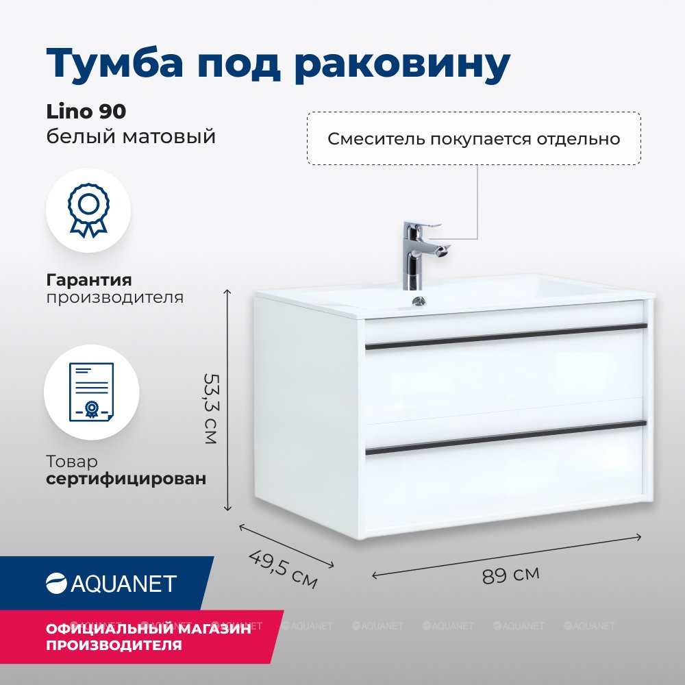 Тумба под раковину подвесная Aquanet Lino 90 см белый матовый 253904