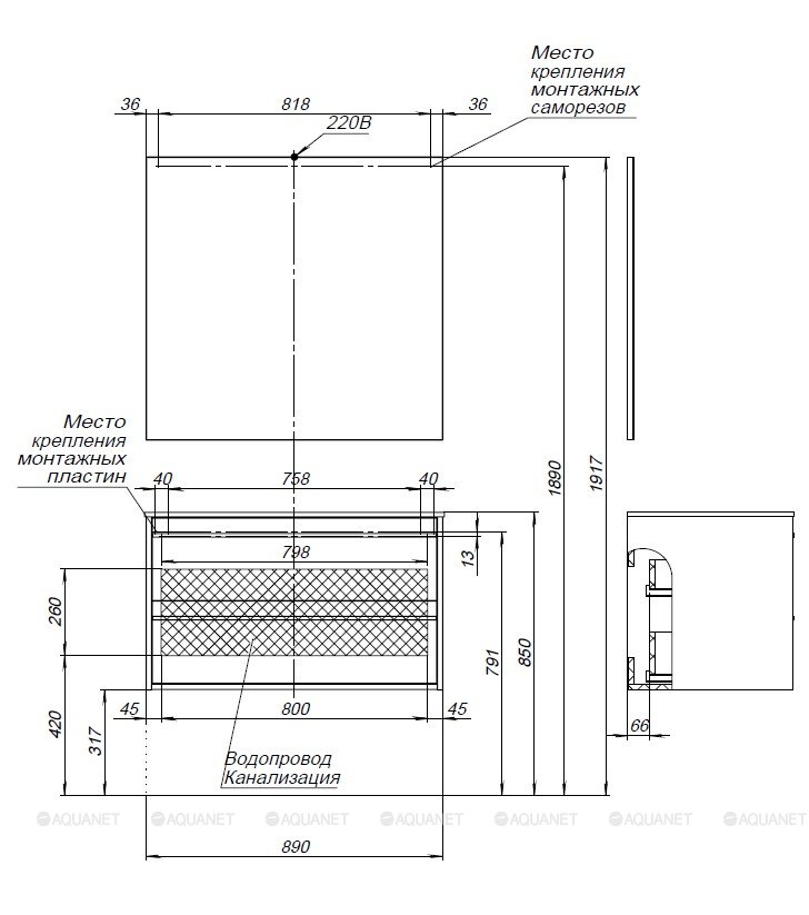 | Раковина | Литьевой мрамор /приобретается отдельно |