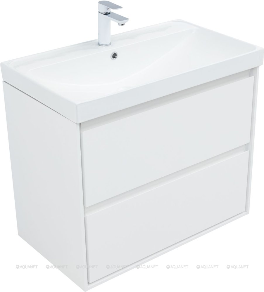 Тумба под раковину подвесная Aquanet Милан 80 см белый глянец 336369