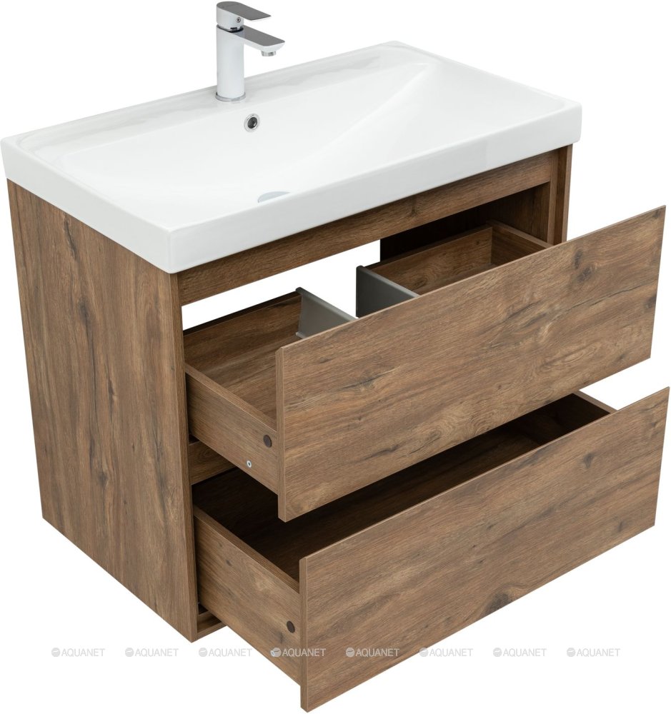 Тумба под раковину подвесная Aquanet Милан 80 см дуб рустикальный 336379