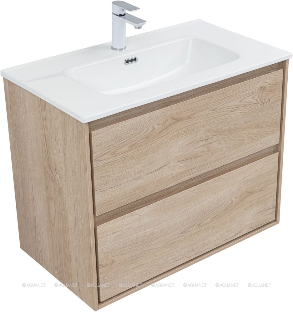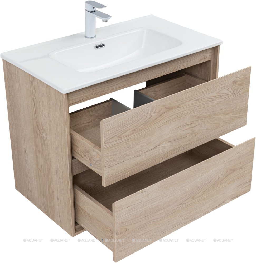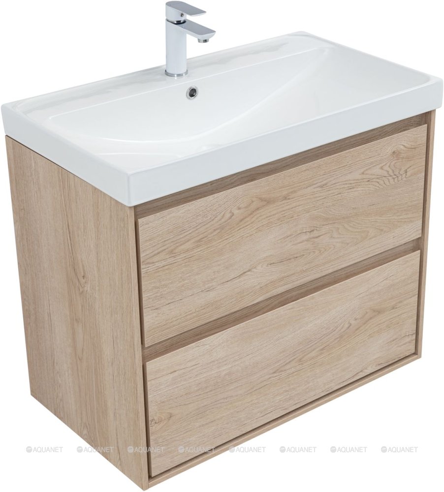 Тумба под раковину подвесная Aquanet Милан 80 см дуб светлый 336384