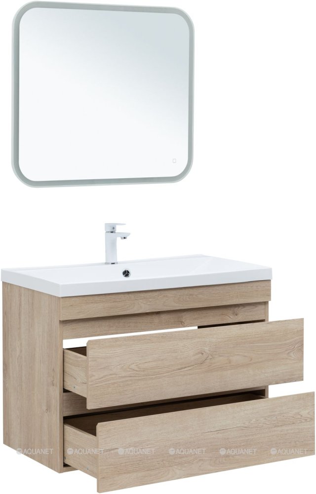 Тумба под раковину подвесная Aquanet Нота NEW 90 см дуб светлый 334199