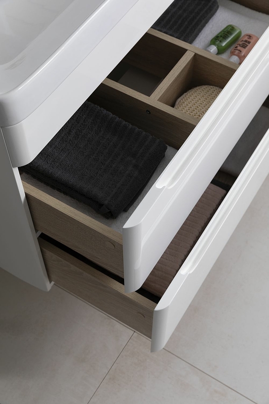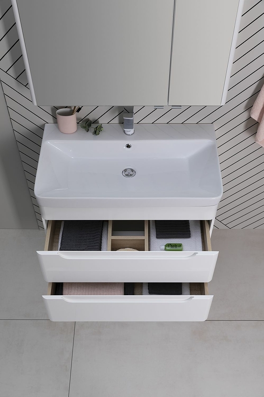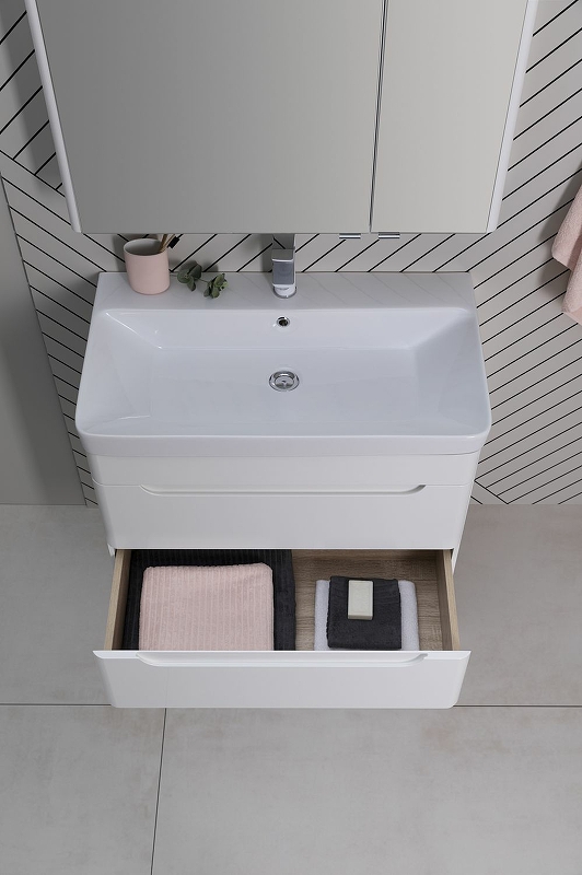 - Тумбы и раковина имеют скругленные углы - пространство ванной комнаты становится комфортнее и безопаснее