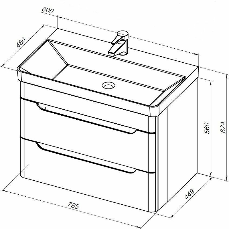 Тумба под раковину подвесная Aquanet София 80 см 2ящ белый глянец 274002
