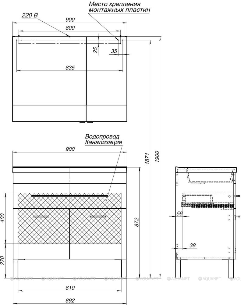 | Раковина | Литьевой мрамор /приобретается отдельно |