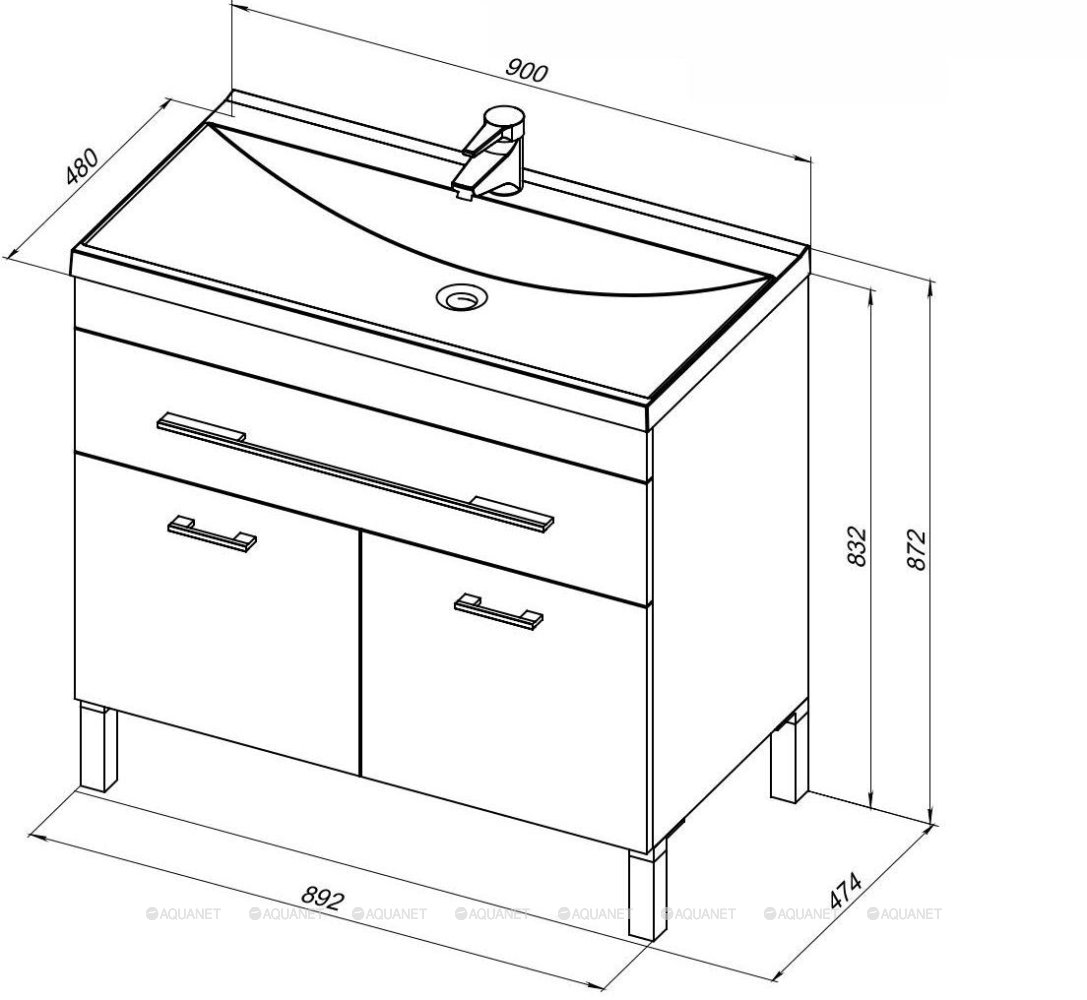 Тумба под раковину подвесная Aquanet Верона 90 см 1ящ+2дв белый 182708