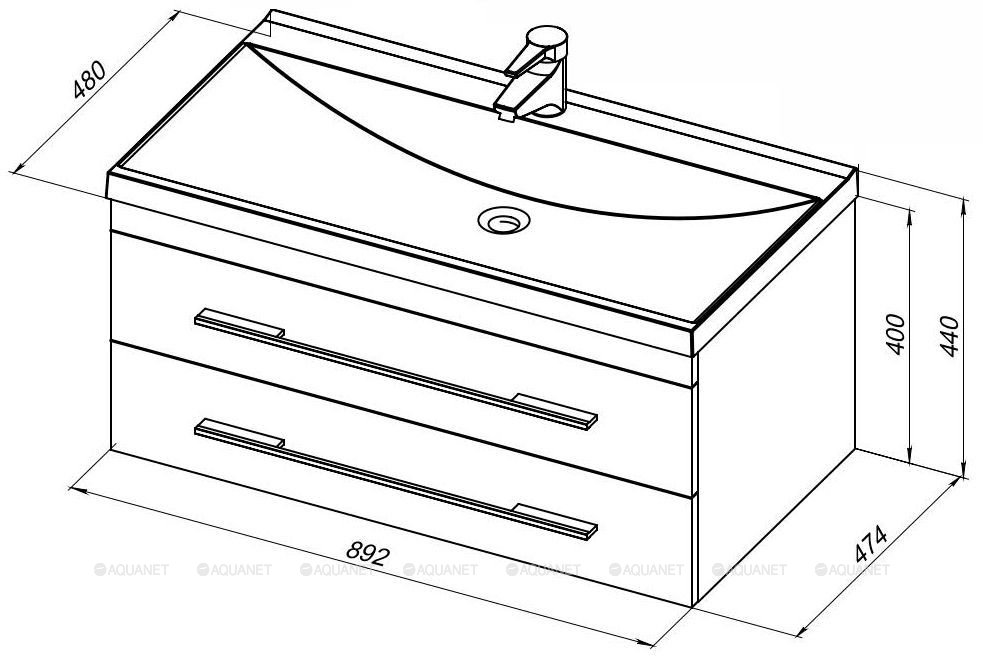 Тумба под раковину подвесная Aquanet Верона 90 см 2ящ белый 172335
