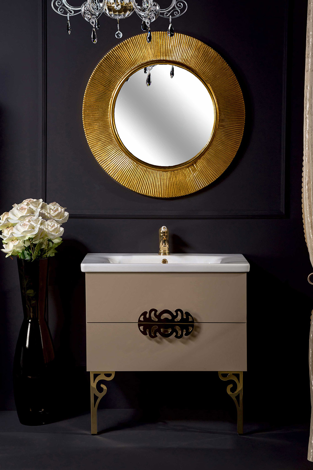 Цветовая гамма коллекции представлена глянцевым белым, глянцевым капучино, глянцевым коричневым и цветом Black wood, под заказ возможно исполнение в глянцевом черном цвете. Размерный ряд коллекции NeoArt состоит из 80 см, 100 см, 110 см и 140 см (на 2 чаши-раковины). В коллекции NeoArt используется ультраглянцевый акриловый МДФ от австрийского производителя Senosan, не только имеющий глубокий и насыщенный цвет, но и позволяющий изделиям служить долгое время несмотря на влажную среду.). Дно ящиков отделано эко-кожей с фирменным стежком Antonio Valanti. Столешницы выполнены как из керамики и каленого стекла, так и материала Solid Glass®, в состав которого входит мраморная крошка и стекло, материал чрезвычайно прочен, не оставляет следов царапин и обладает неповторимой глубиной цвета. Эксклюзивная линейка раковин данной коллекции вряд ли оставит равнодушными даже самых притязательных клиентов. Некоторые из них производятся по оригинальным лекалам из материала Corian®, другие из чистейшего горного хрусталя, с оптимальным содержанием окиси свинца (PbO), не менее 24%. Произведенные в Италии ручки, покрыты позолотой 24Карат. Дно выдвижных ящиков покрыто кожей с маркировкой Antonio Valanti. В изделиях используется фурнитура от мирового лидера Hettich®.