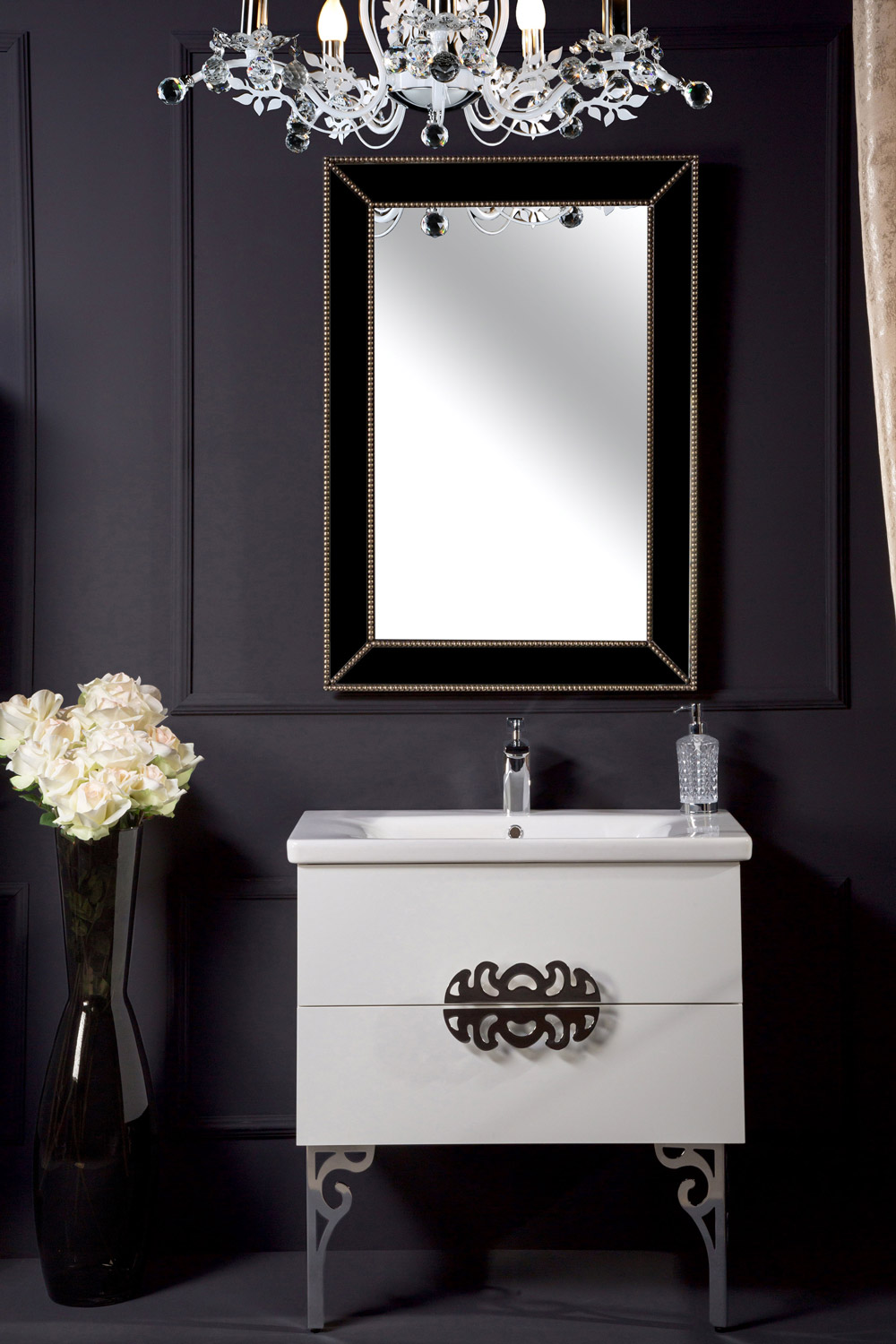 Цветовая гамма коллекции представлена глянцевым белым, глянцевым капучино, глянцевым коричневым и цветом Black wood, под заказ возможно исполнение в глянцевом черном цвете. Размерный ряд коллекции NeoArt состоит из 80 см, 100 см, 110 см и 140 см (на 2 чаши-раковины). В коллекции NeoArt используется ультраглянцевый акриловый МДФ от австрийского производителя Senosan, не только имеющий глубокий и насыщенный цвет, но и позволяющий изделиям служить долгое время несмотря на влажную среду.). Дно ящиков отделано эко-кожей с фирменным стежком Antonio Valanti. Столешницы выполнены как из керамики и каленого стекла, так и материала Solid Glass®, в состав которого входит мраморная крошка и стекло, материал чрезвычайно прочен, не оставляет следов царапин и обладает неповторимой глубиной цвета. Эксклюзивная линейка раковин данной коллекции вряд ли оставит равнодушными даже самых притязательных клиентов. Некоторые из них производятся по оригинальным лекалам из материала Corian®, другие из чистейшего горного хрусталя, с оптимальным содержанием окиси свинца (PbO), не менее 24%. Произведенные в Италии ручки, покрыты позолотой 24Карат. Дно выдвижных ящиков покрыто кожей с маркировкой Antonio Valanti. В изделиях используется фурнитура от мирового лидера Hettich®.