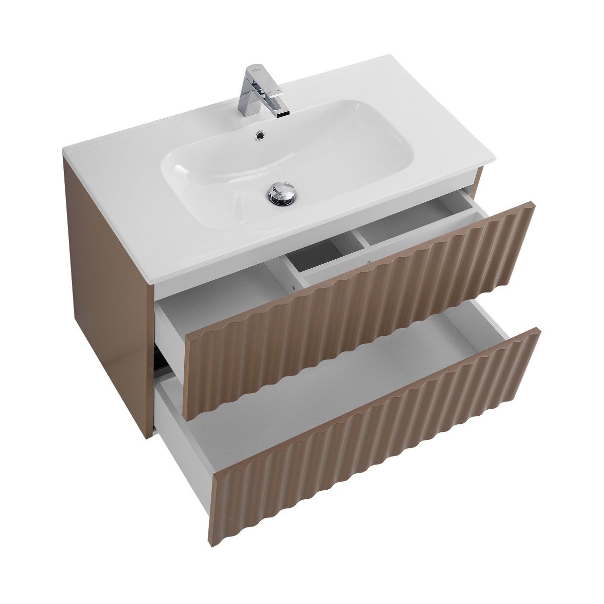 Тумба под раковину подвесная с LED подсветкой Art&Max Elegant 80 см капучино матовый AM-ELEGANT-800-2C-SO-CM-LED