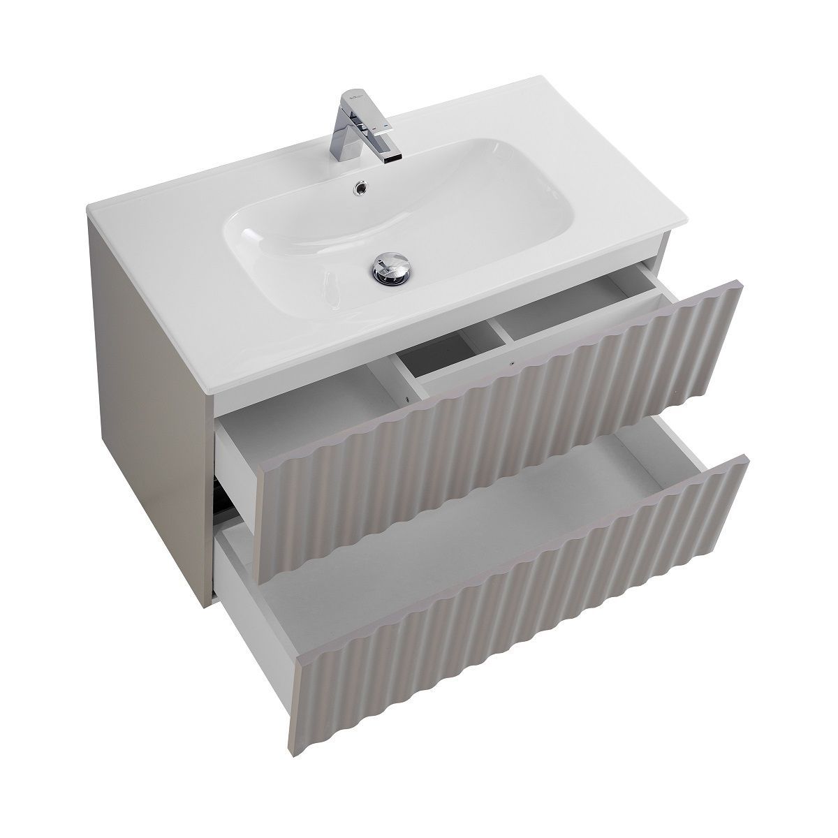 Тумба под раковину подвесная с LED подсветкой Art&Max Elegant 80 см светло-серый матовый AM-ELEGANT-800-2C-SO-GCM-LED