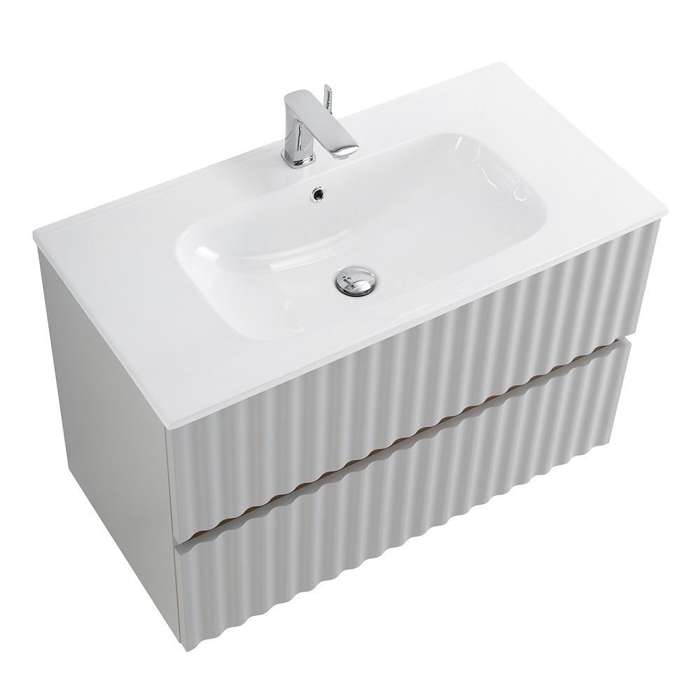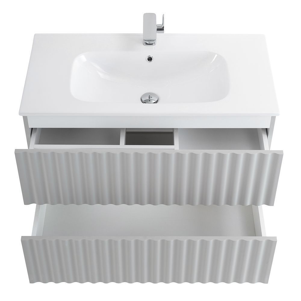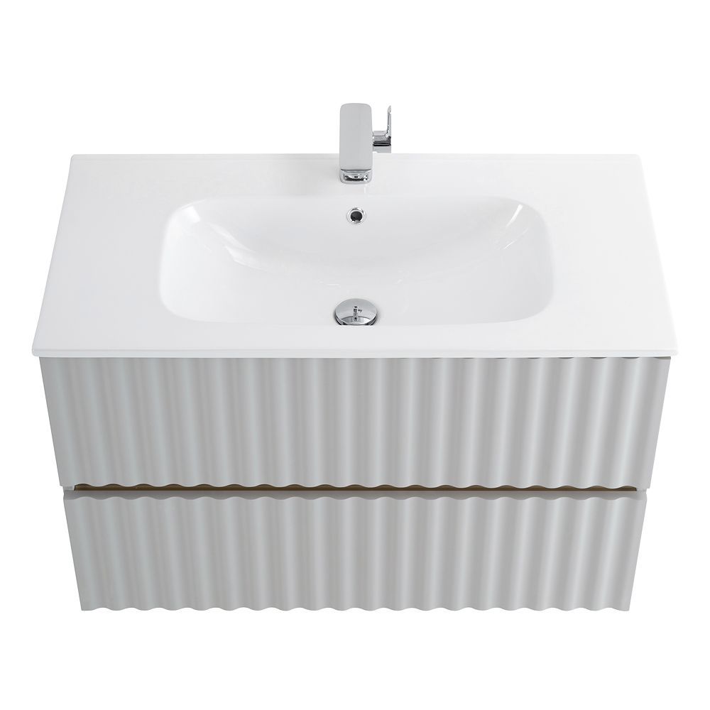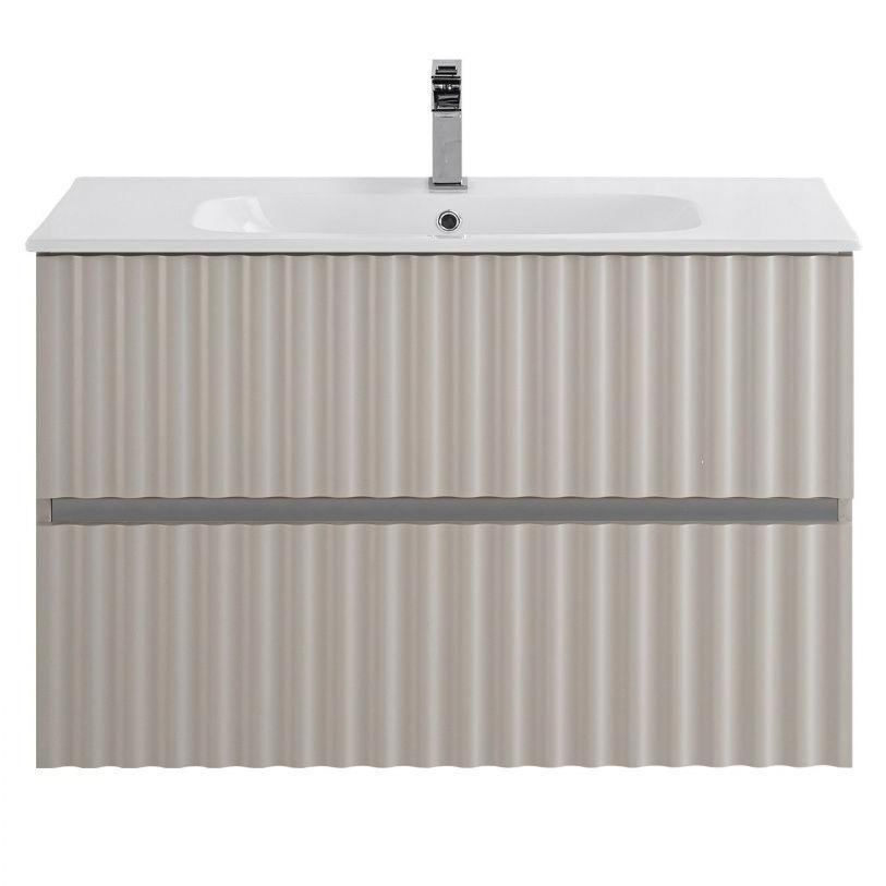 Тумба под раковину подвесная с LED подсветкой Art&Max Elegant 90 см светло-серый матовый AM-ELEGANT-900-2C-SO-GCM-LED