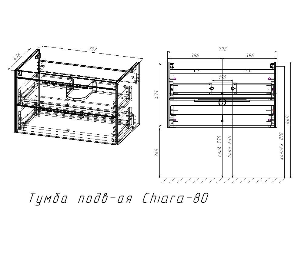 Тумба под раковину подвесная Vincea Chiara 2D 80 см C.Oak VMC-2C2800CO