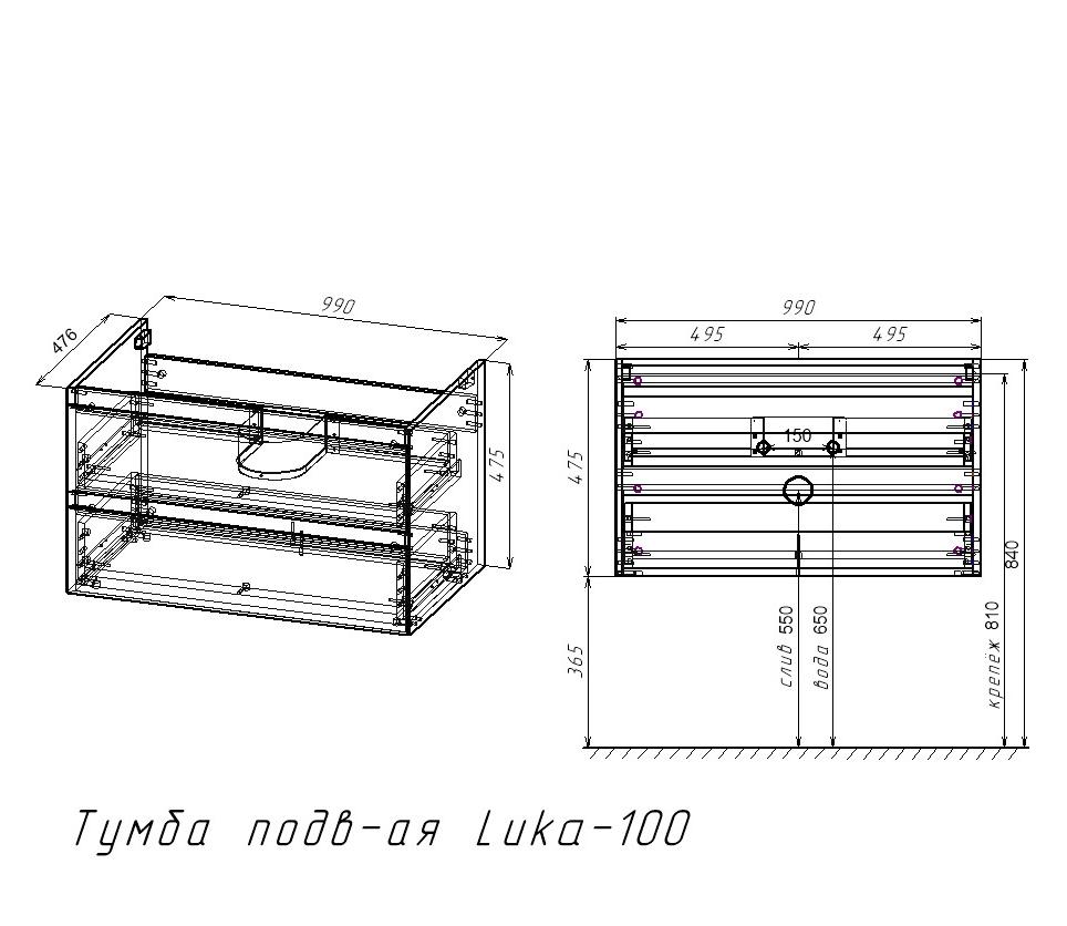 Тумба под раковину подвесная Vincea Luka 100 см G.Stone VMC-2L100GS