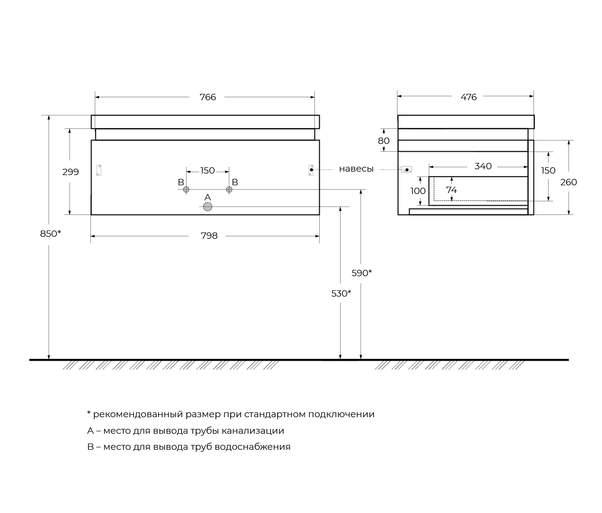 | Столешница | Керамогранит/ приобретается отдельно |
