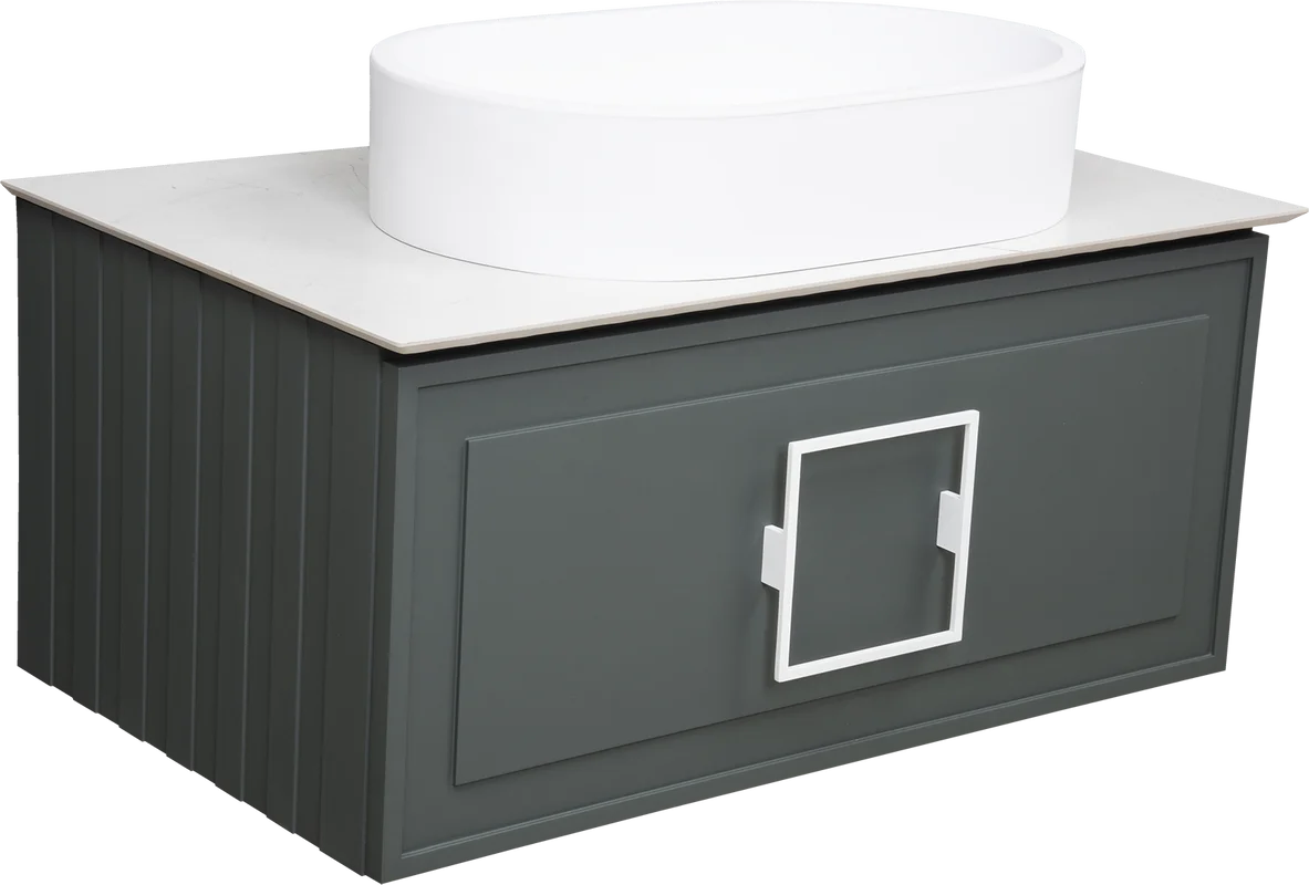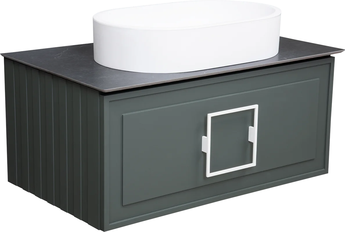 Тумба под раковину/ столешницу подвесная La Fenice Cubo 80 см серо-зелёный FNC-01-CUB-G-80