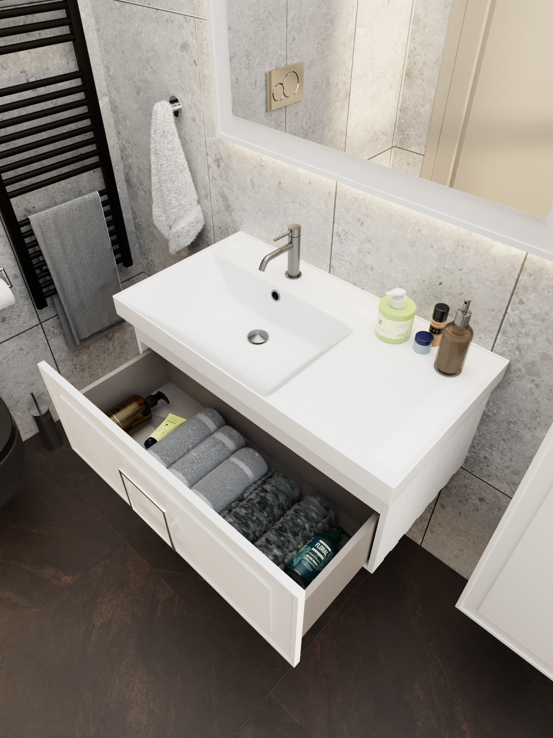 Тумба под раковину/ столешницу подвесная La Fenice Cubo 90 см белый FNC-01-CUB-B-90