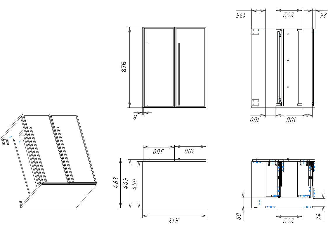 Скрытые доводчики SAMET (Турция) плавного закрывания частичного выдвижения, подвесной регулируемый механизм Camar (Италия).