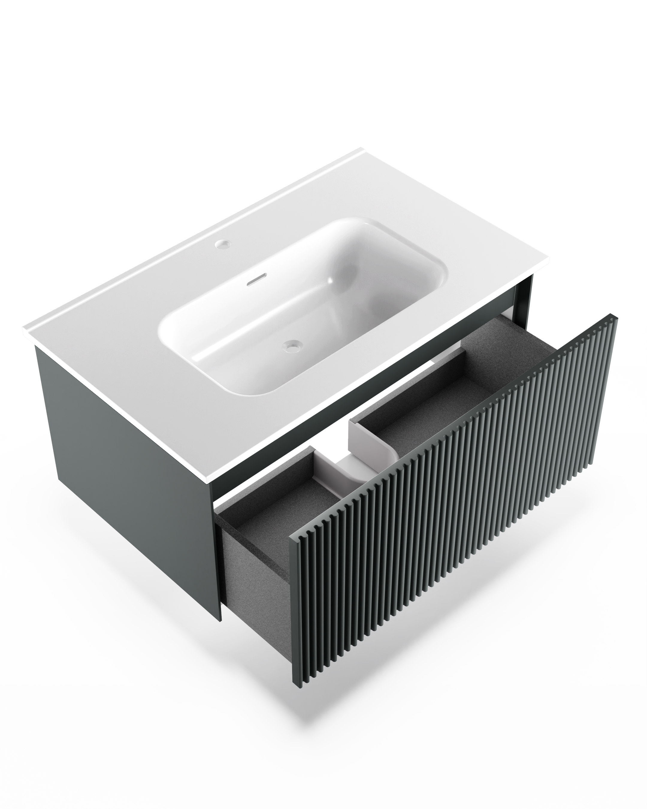 Тумба под раковину/ столешницу подвесная La Fenice Terra 80 см серо-зелёный FNC-01-TER-G-80