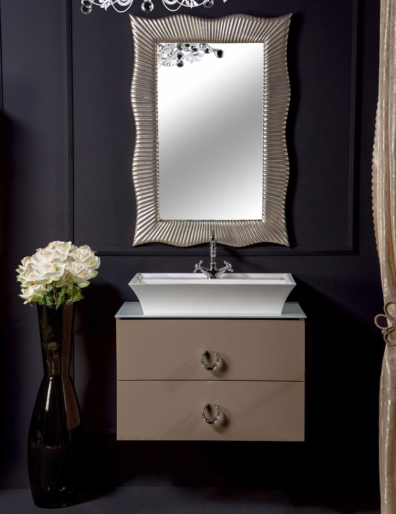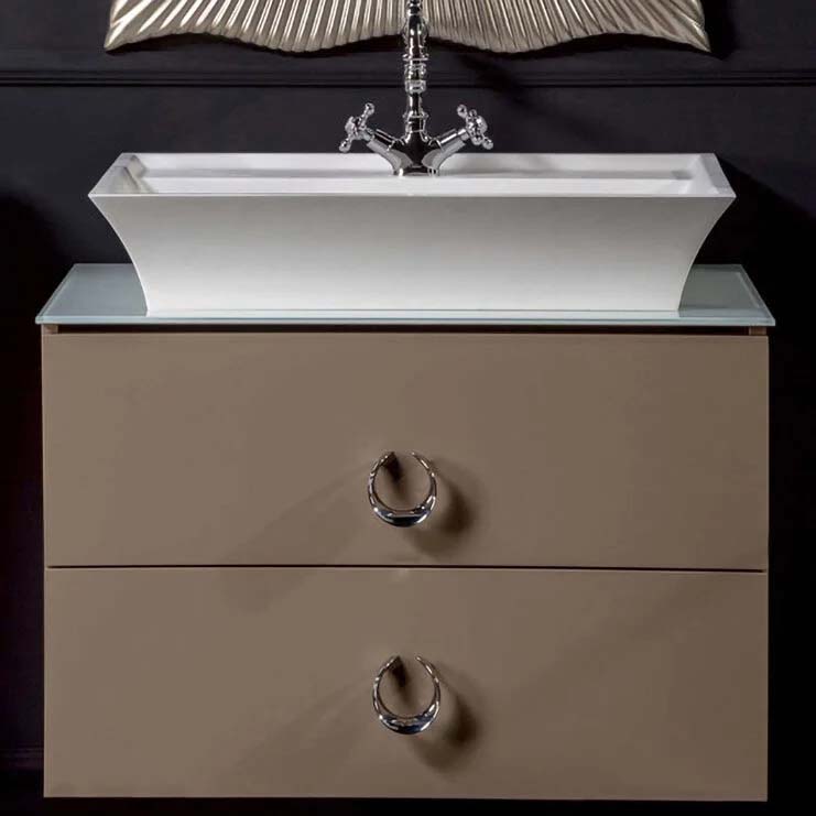 Цветовая гамма коллекции представлена глянцевым белым, глянцевым капучино, глянцевым коричневым и цветом Black wood, под заказ возможно исполнение в глянцевом черном цвете. Размерный ряд коллекции NeoArt состоит из 80 см, 100 см, 110 см и 140 см (на 2 чаши-раковины). В коллекции NeoArt используется ультраглянцевый акриловый МДФ от австрийского производителя Senosan, не только имеющий глубокий и насыщенный цвет, но и позволяющий изделиям служить долгое время несмотря на влажную среду.). Дно ящиков отделано эко-кожей с фирменным стежком Antonio Valanti. Столешницы выполнены как из керамики и каленого стекла, так и материала Solid Glass®, в состав которого входит мраморная крошка и стекло, материал чрезвычайно прочен, не оставляет следов царапин и обладает неповторимой глубиной цвета. Эксклюзивная линейка раковин данной коллекции вряд ли оставит равнодушными даже самых притязательных клиентов. Некоторые из них производятся по оригинальным лекалам из материала Corian®, другие из чистейшего горного хрусталя, с оптимальным содержанием окиси свинца (PbO), не менее 24%. Произведенные в Италии ручки, покрыты позолотой 24Карат. Дно выдвижных ящиков покрыто кожей с маркировкой Antonio Valanti. В изделиях используется фурнитура от мирового лидера Hettich®.