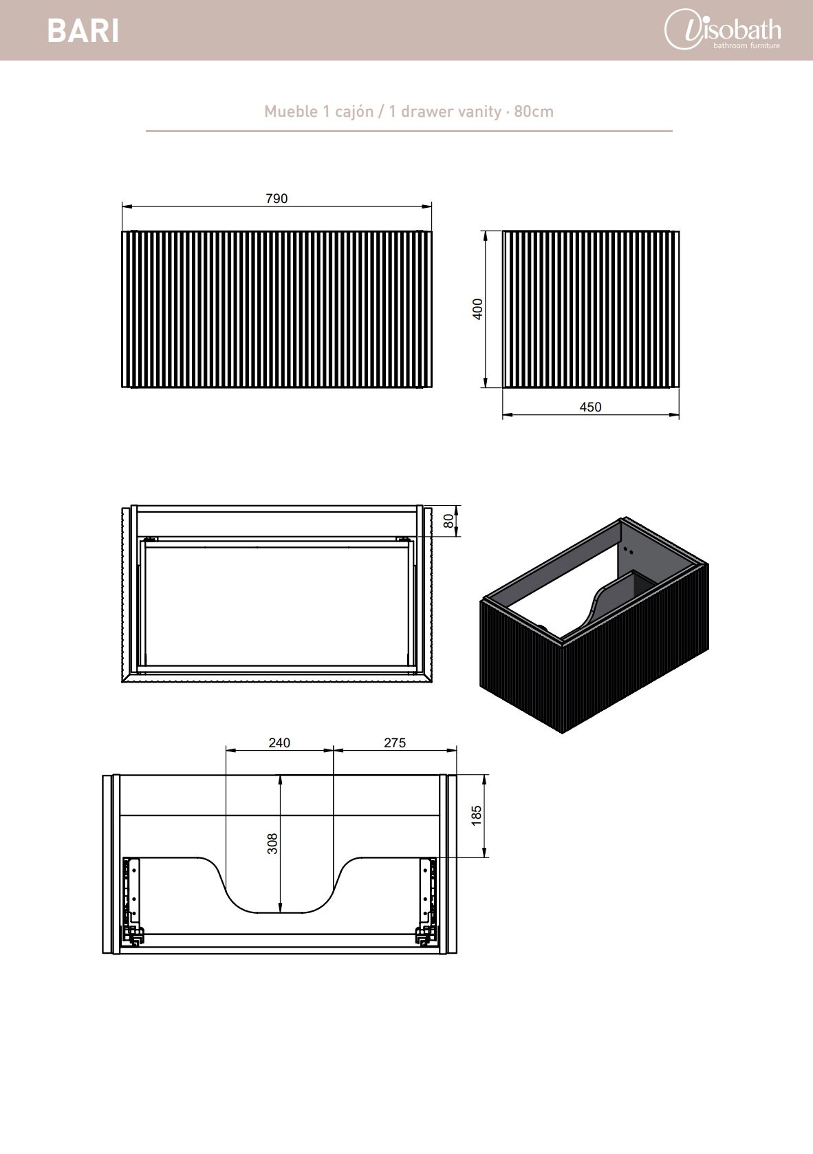 Тумба под раковину Visobath Bari 80 см 1ящ Push темно-синий матовый 87249/Navy