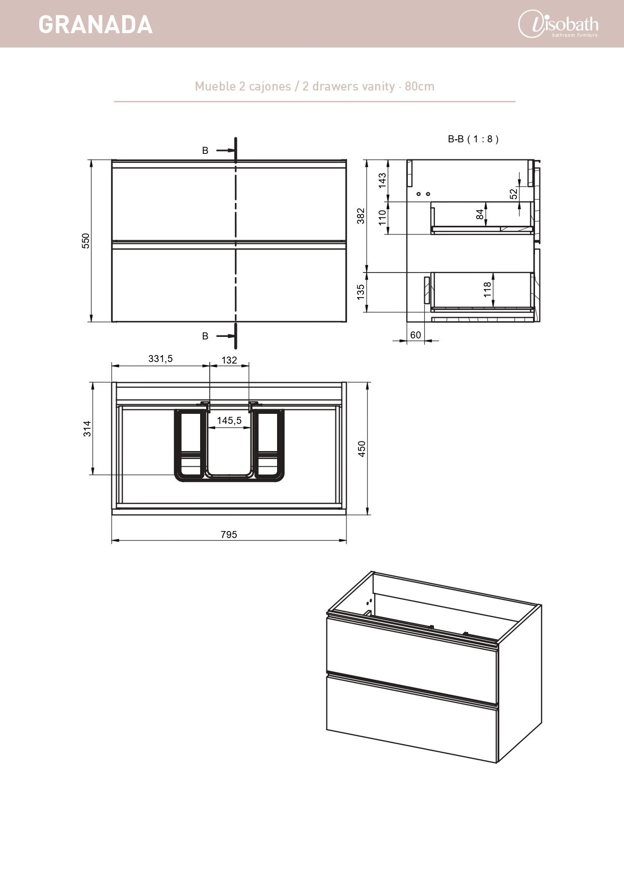 Тумба под раковину Visobath Granada 80 см 2ящ бежевый матовый Cotton 70455/87602