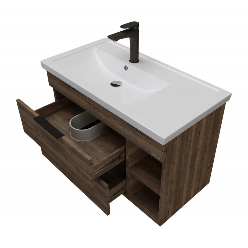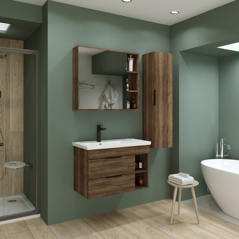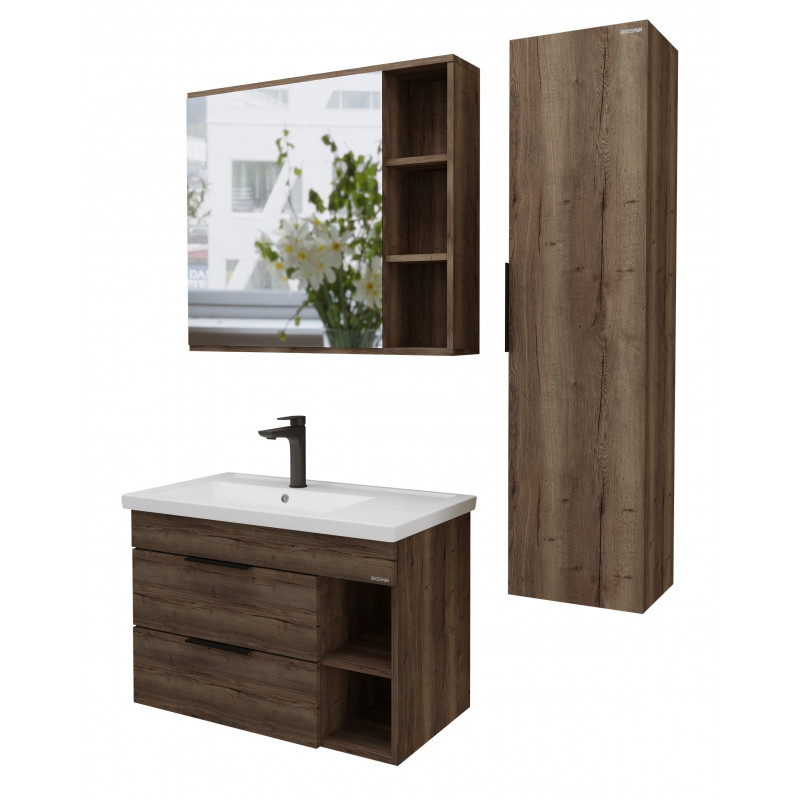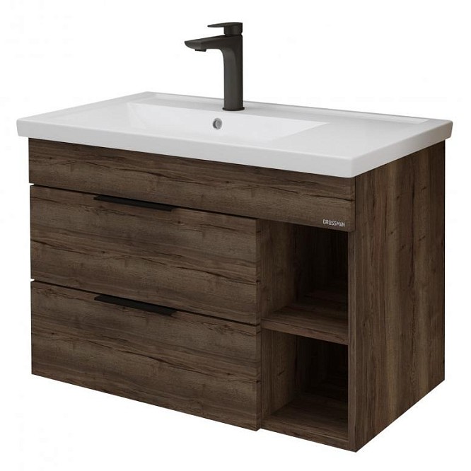 Тумба подвесная под раковину Grossman Форта 80 см темный дуб 1080042